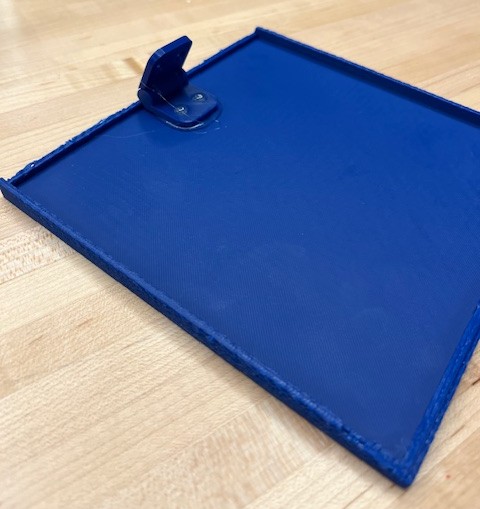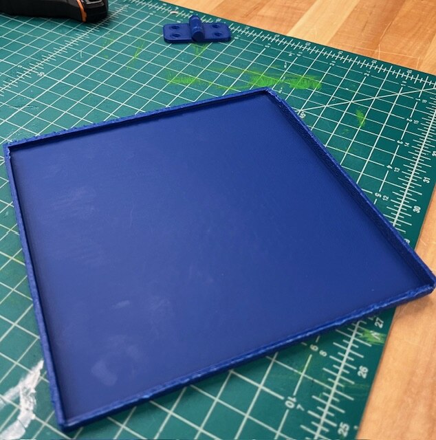 For the lid, we decided to make a shoebox style lid. The plan was to have to fit snugly over the box to stay on. Amazingly, the print for the lid failed and one of the sides was a bit spaghetti-ed. Once again in the name of time and waste reduction, we once again decided to pivot. Using a soldering iron, we put two holes on one side of the lid and two holes in the box to attach them with a hinge. After breaking the hinge, we made a zip tie “hinge” to attach the lid.