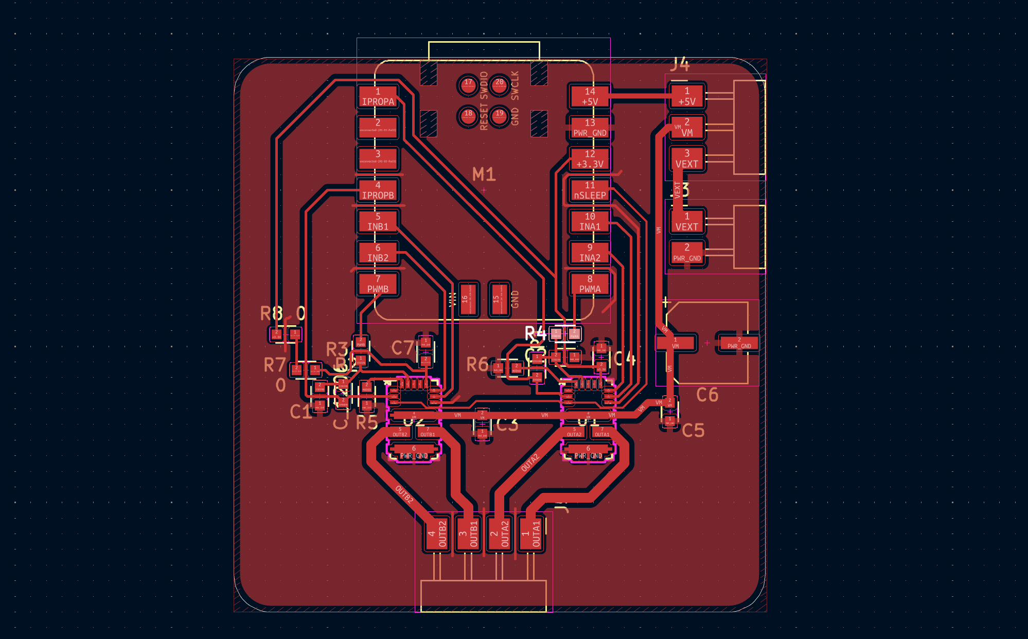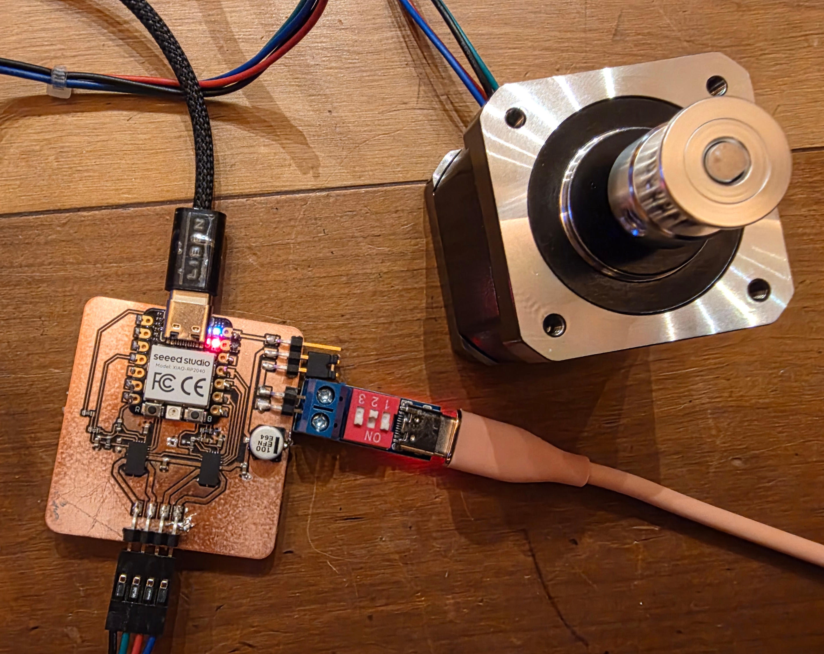 DRV8263 xiao¶ link to git This is a board for controlling a stepper with a pair of DRV8263 H-bridge chip, which can handle more current than any of the H-bridges used in the class so far. Design¶ Laser engraving¶ Stencil¶ Soldering¶ Stepper¶