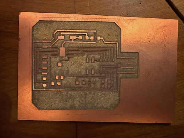 First we did some test patches to find the right parameters. Issues is that when it is too powerful the paper catches on fire while the copper is still in one piece.