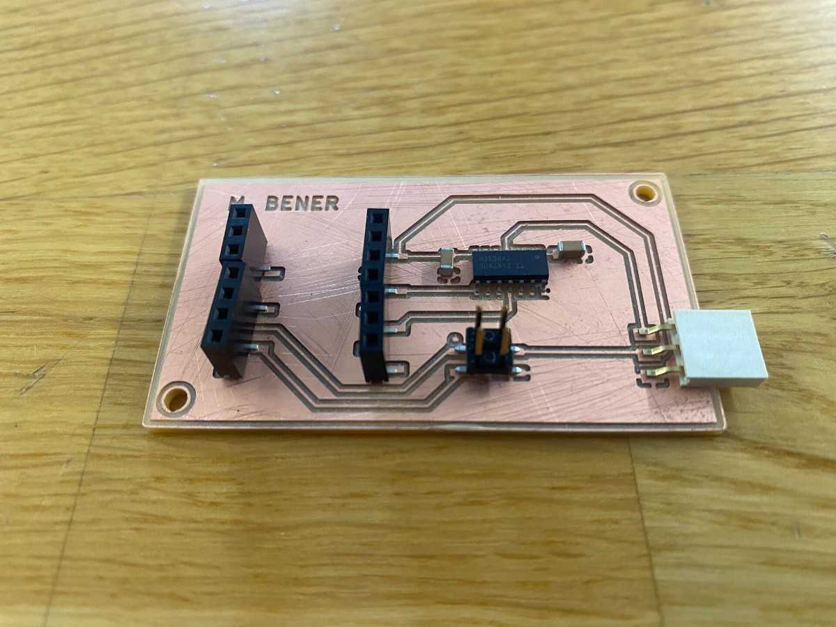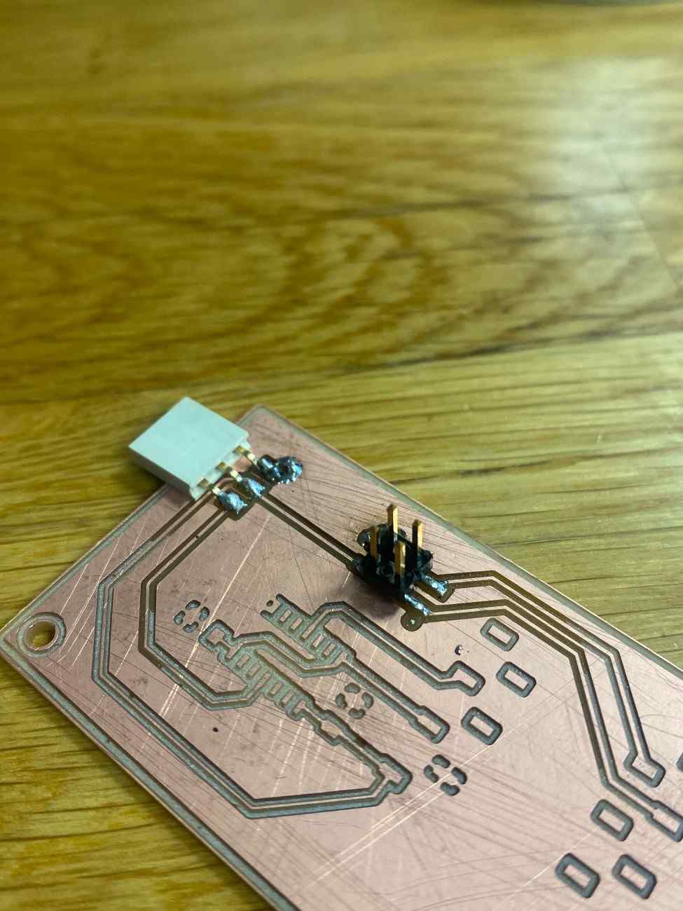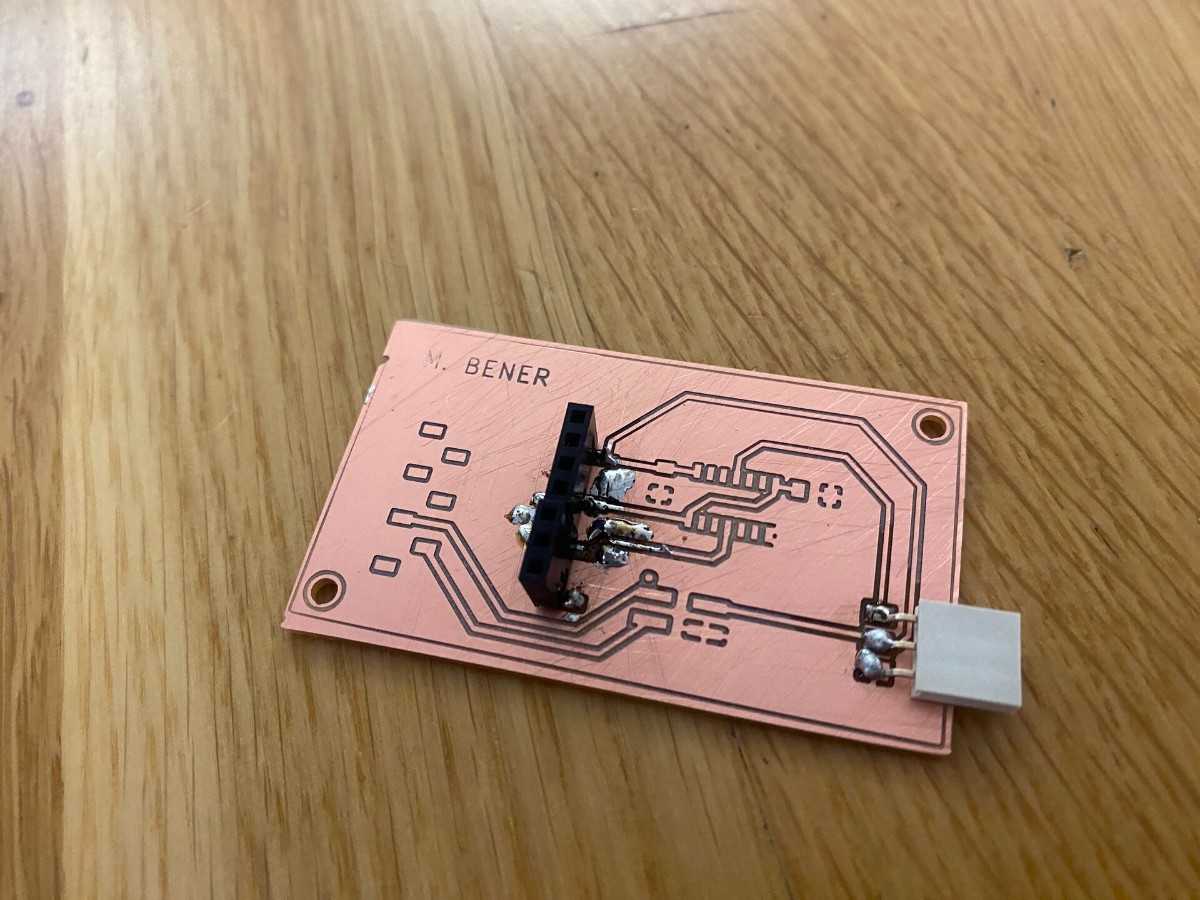 This week focused on electronics production: milling the PCB, soldering all components, debugging, and finally actuating a servo motor using the board I designed in Week 6.