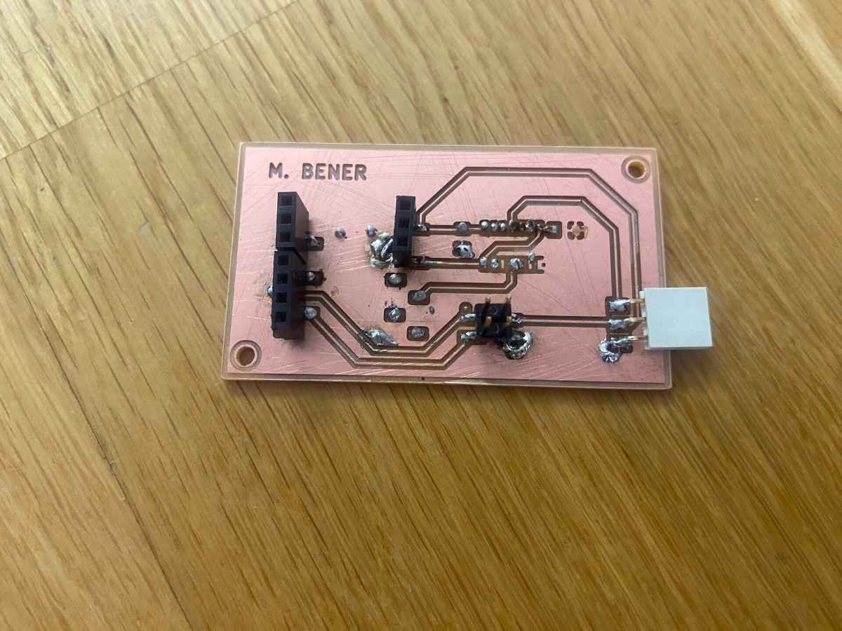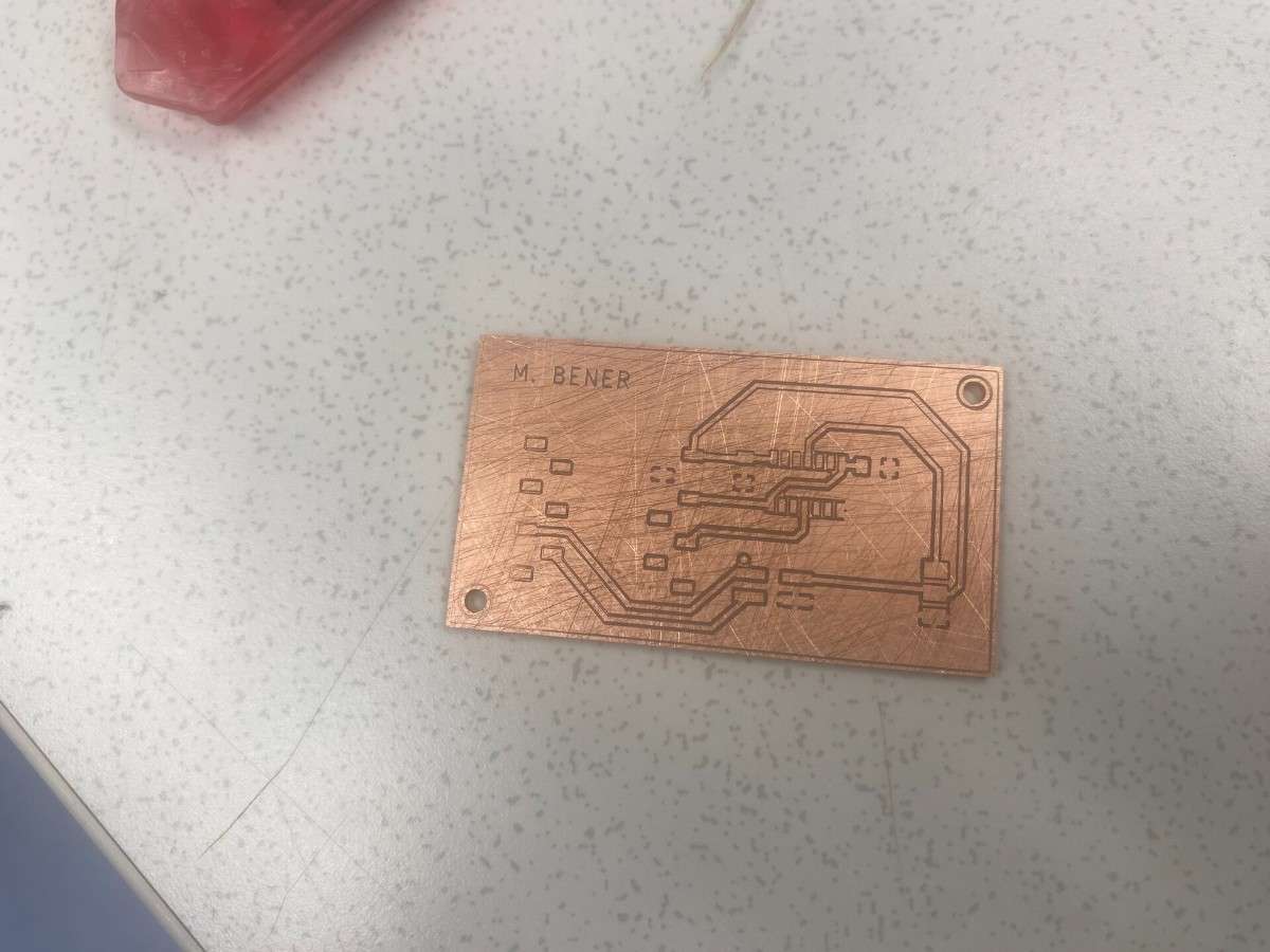Starting from the RML files generated in Week 6, I produced my custom PCB using the SRM-20 milling machine, then soldered all components, learned from several failed attempts, and eventually built a fully working microcontroller development board.