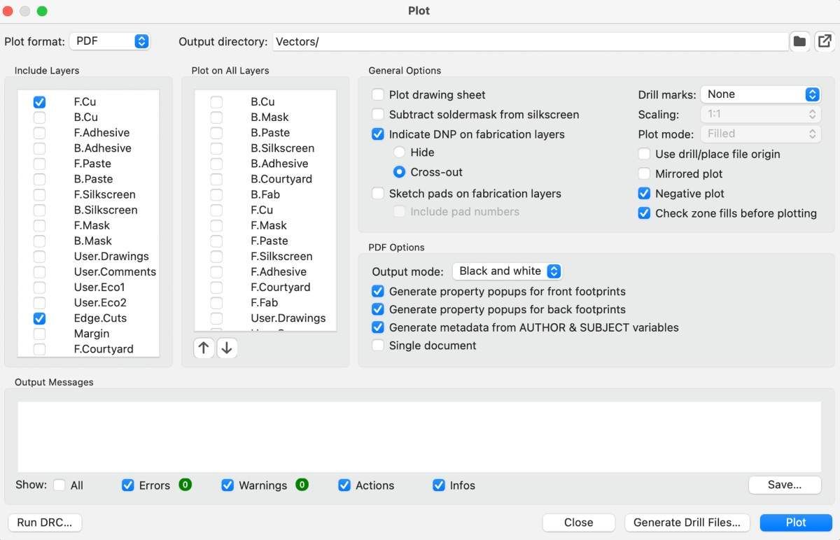 We avoid exporting SVG directly from KiCad because the KiCad SVG output is unreliable and breaks scaling.