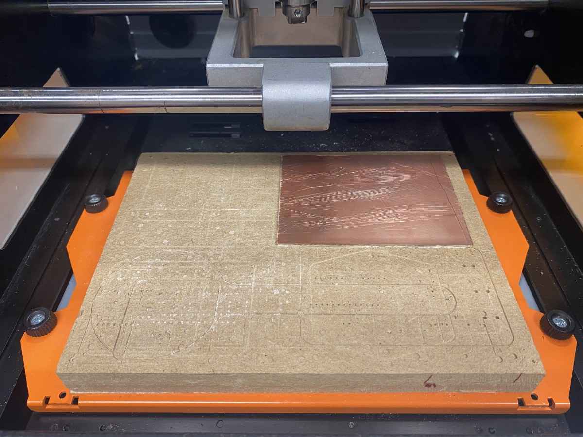 The first step was preparing the copper clad for milling. I covered the back of the copper board with double-sided tape to ensure firm adhesion inside the milling machine.