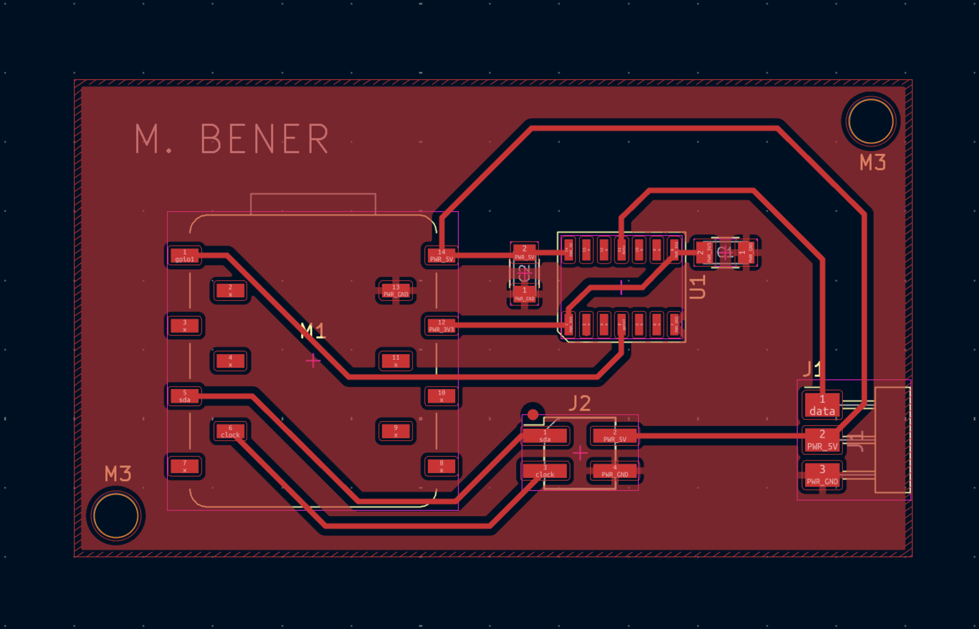 One important challenge during the board design stage was the OLED connector itself. The standard Fab library did not include the PH2.0 7-pin footprint that I needed, so I created a custom symbol and footprint for it. This was an important step because it allowed me to build the board around the exact screen I wanted to use instead of changing the design to fit the available library parts.