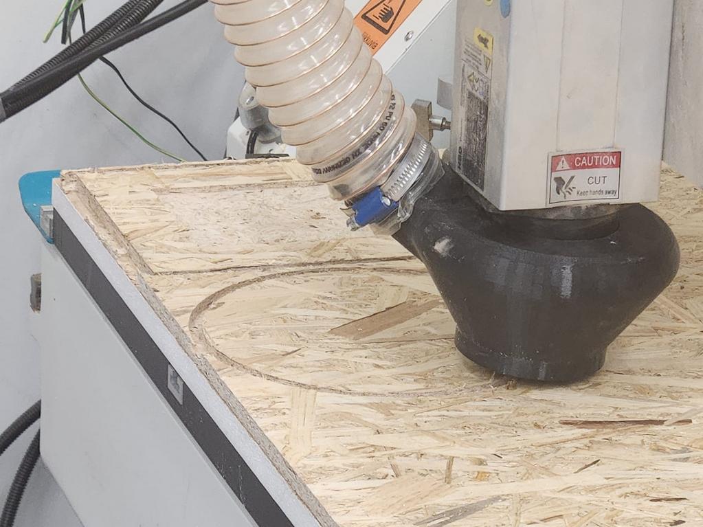During the machining process, proper personal protective equipment must always be used to ensure safety. Safety glasses are required at all times in order to protect the eyes from dust, wood chips, or other flying debris created during milling. Because the CNC machine produces high levels of noise, ear protection must also be worn while the machine is operating.