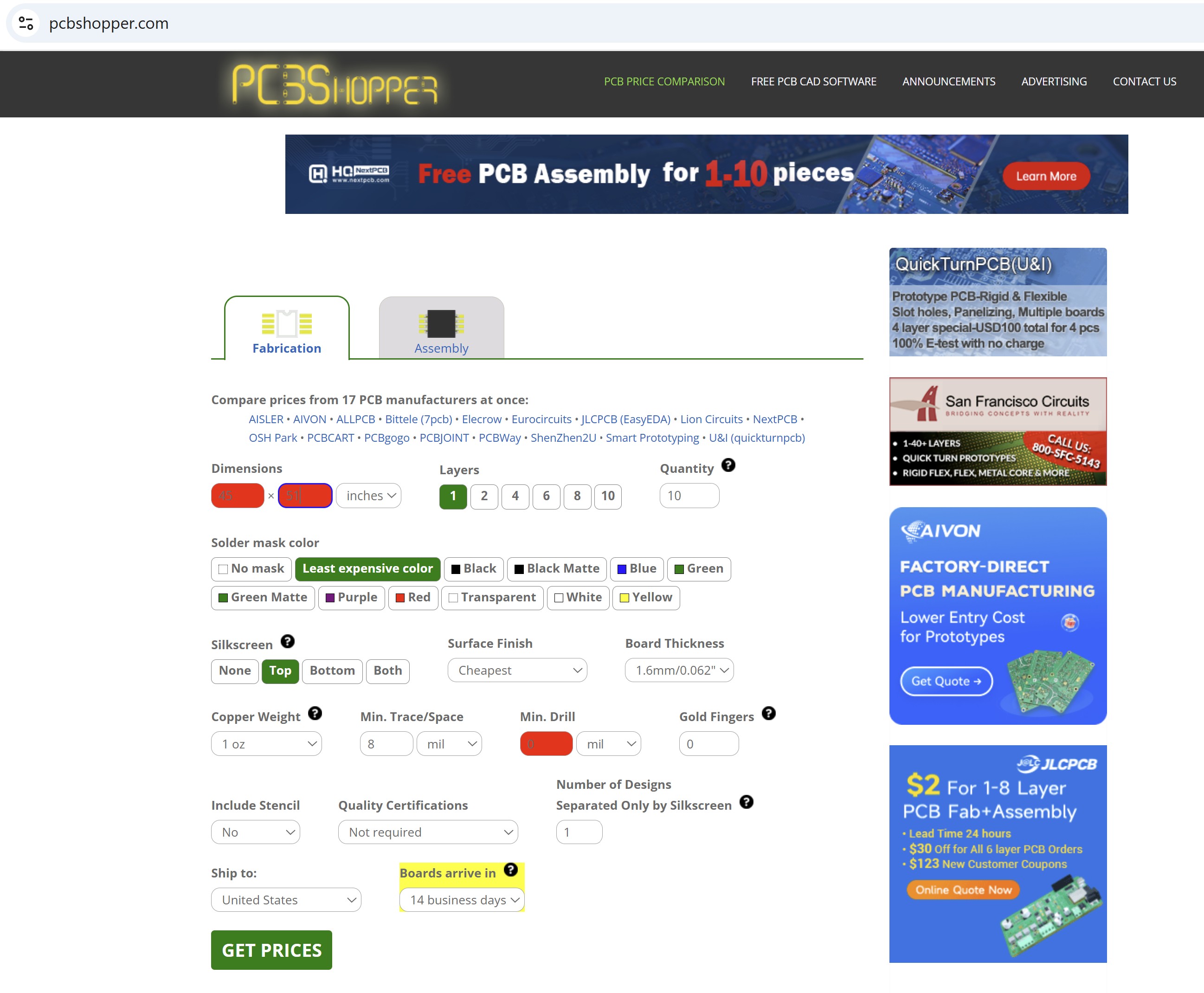 From our local lecture, Antti introduced the PCBshoper website, which is really nice to chose the company for your needs.