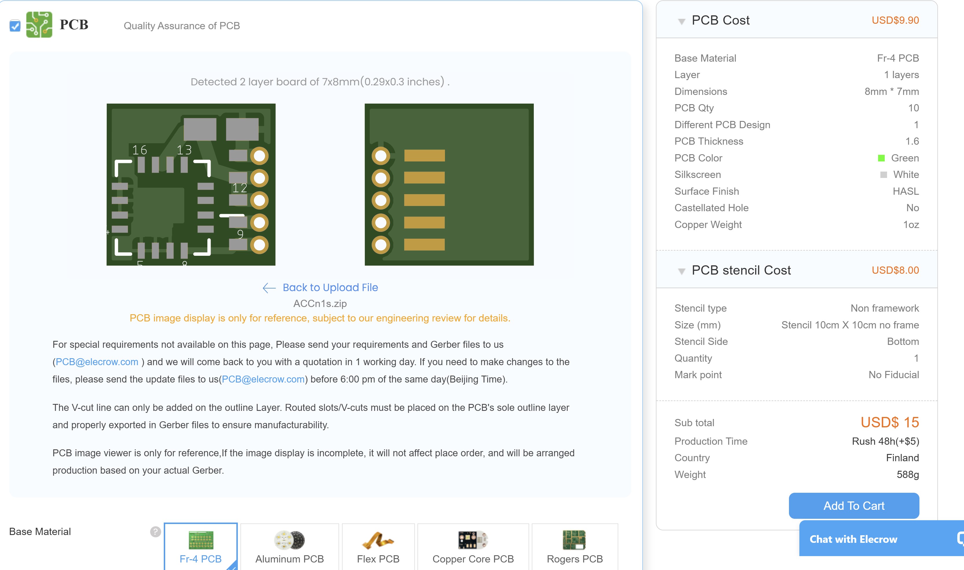Then we just review the price of PCB from different companies and delivery time. We selected the elecrow company.