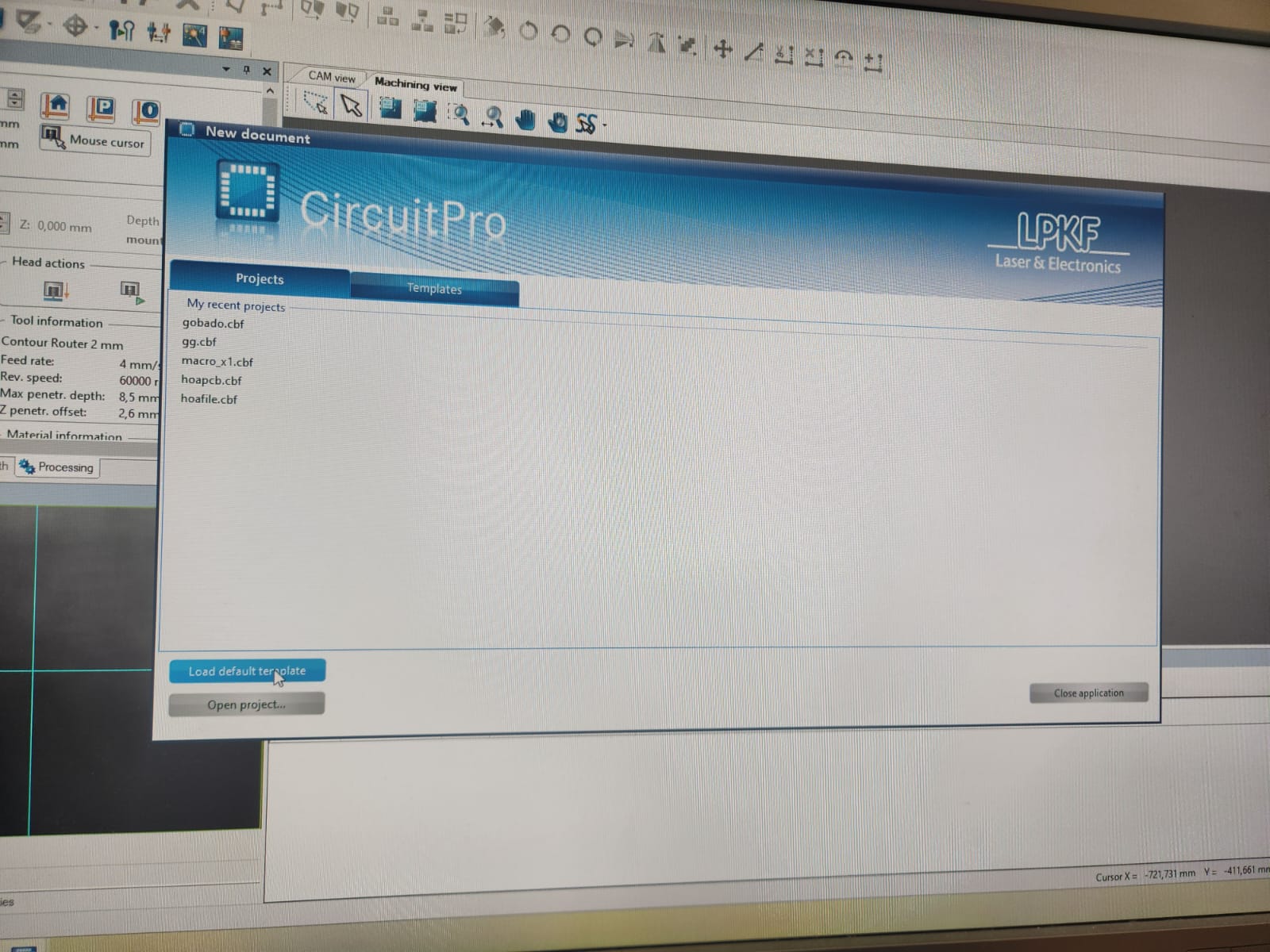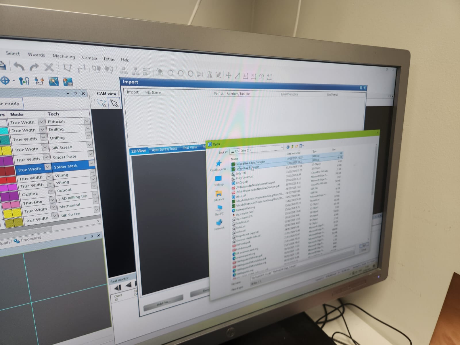 We opened up the CircuitPro software on the computer for milling machine: