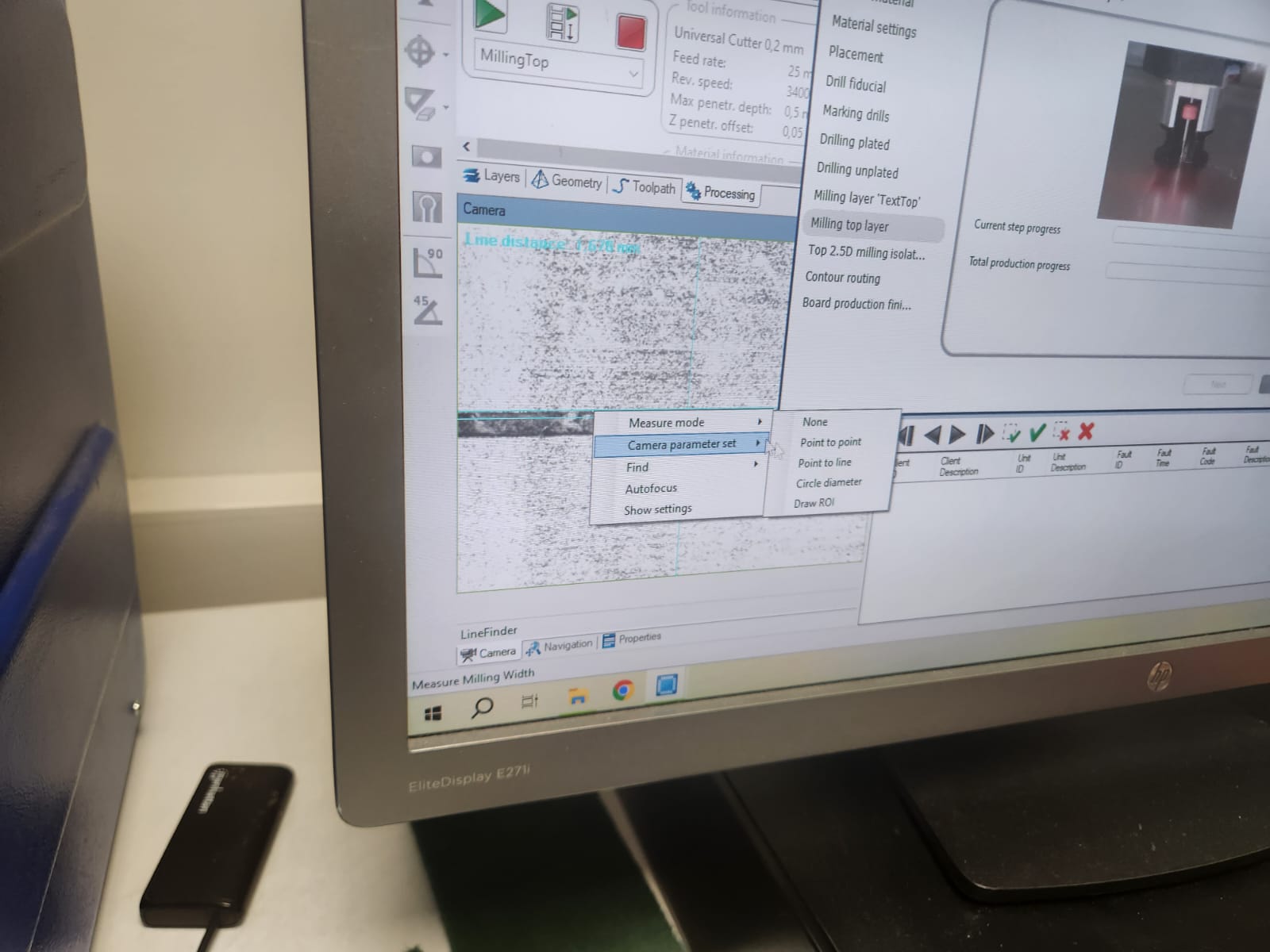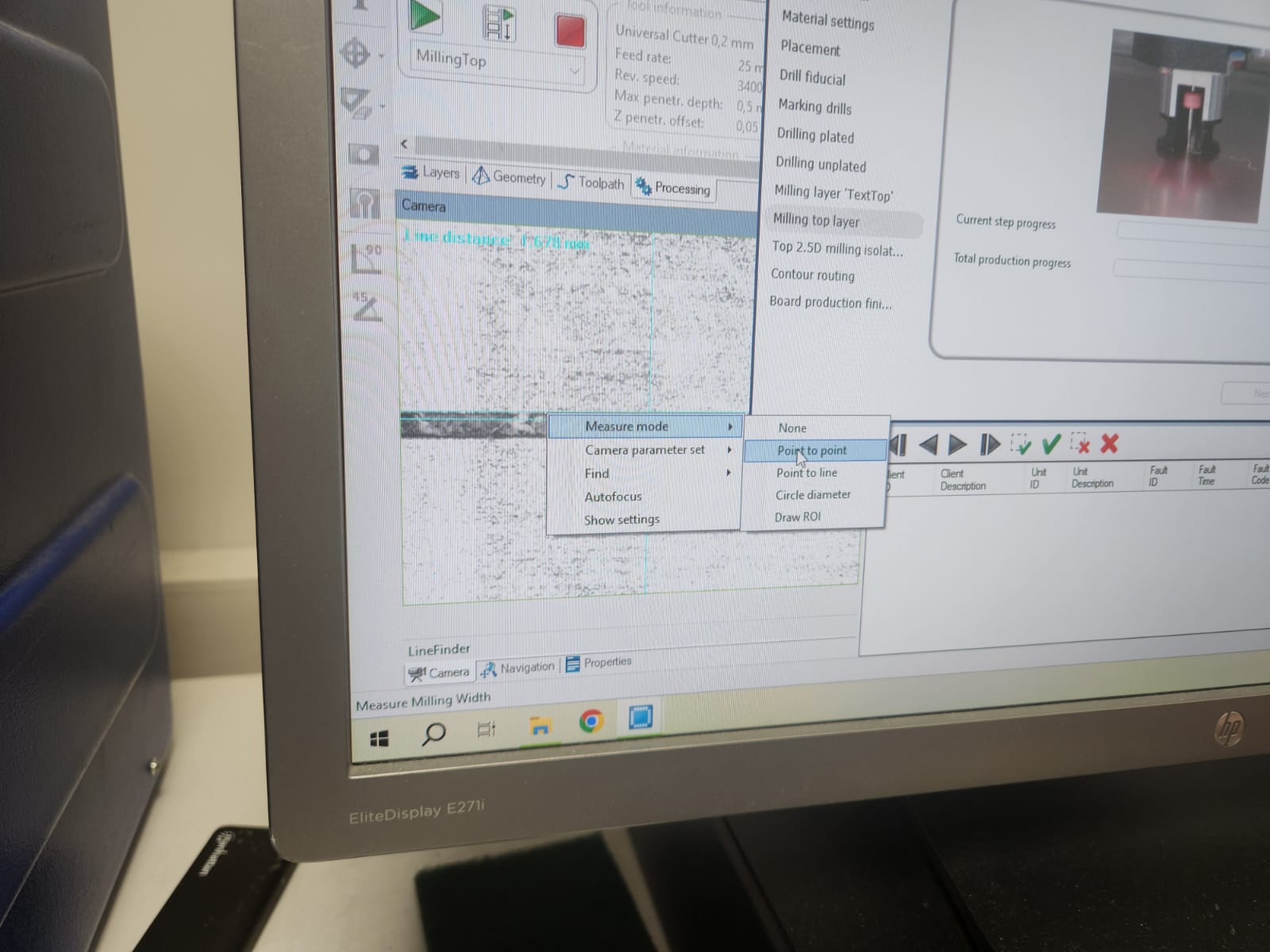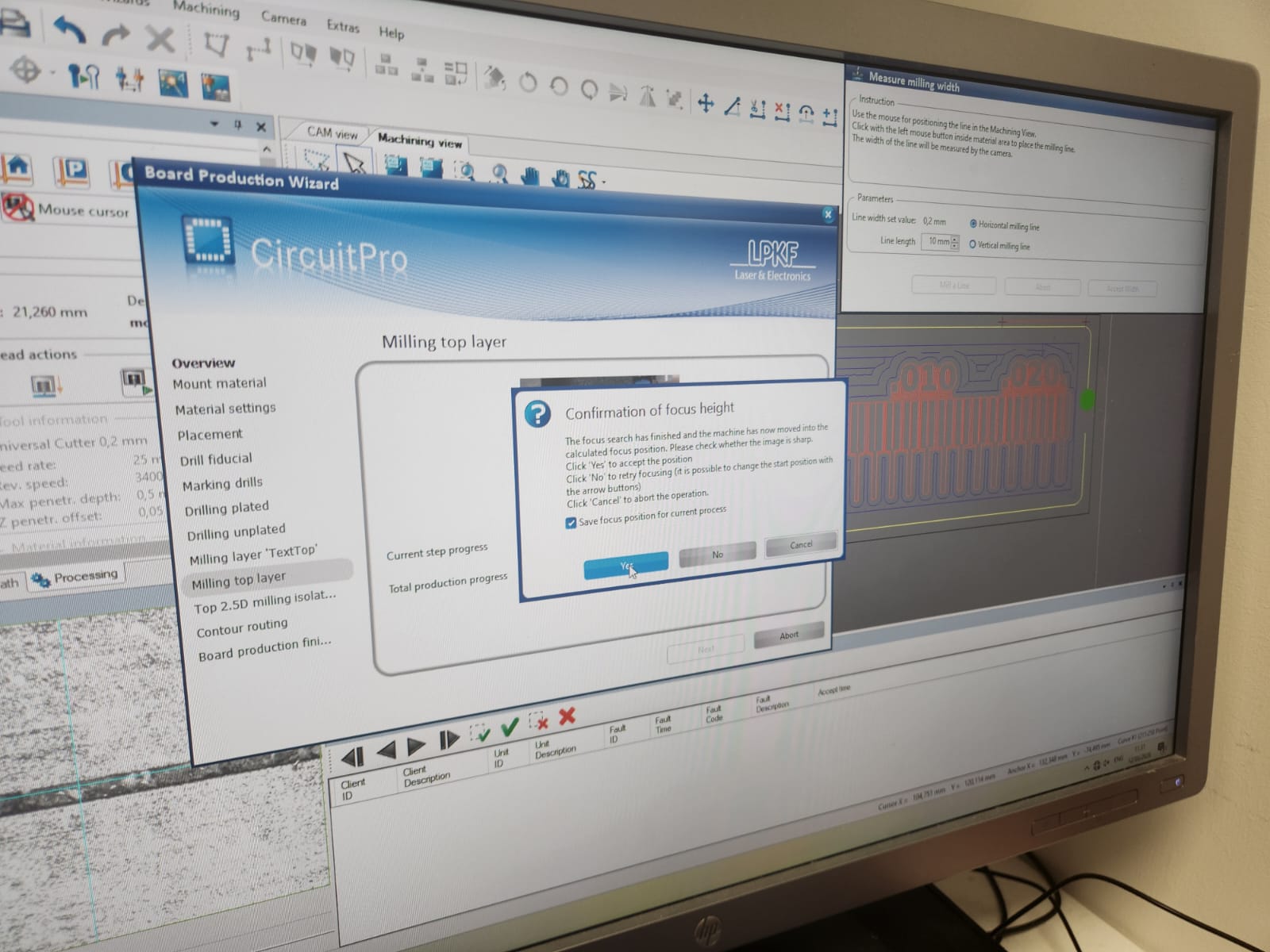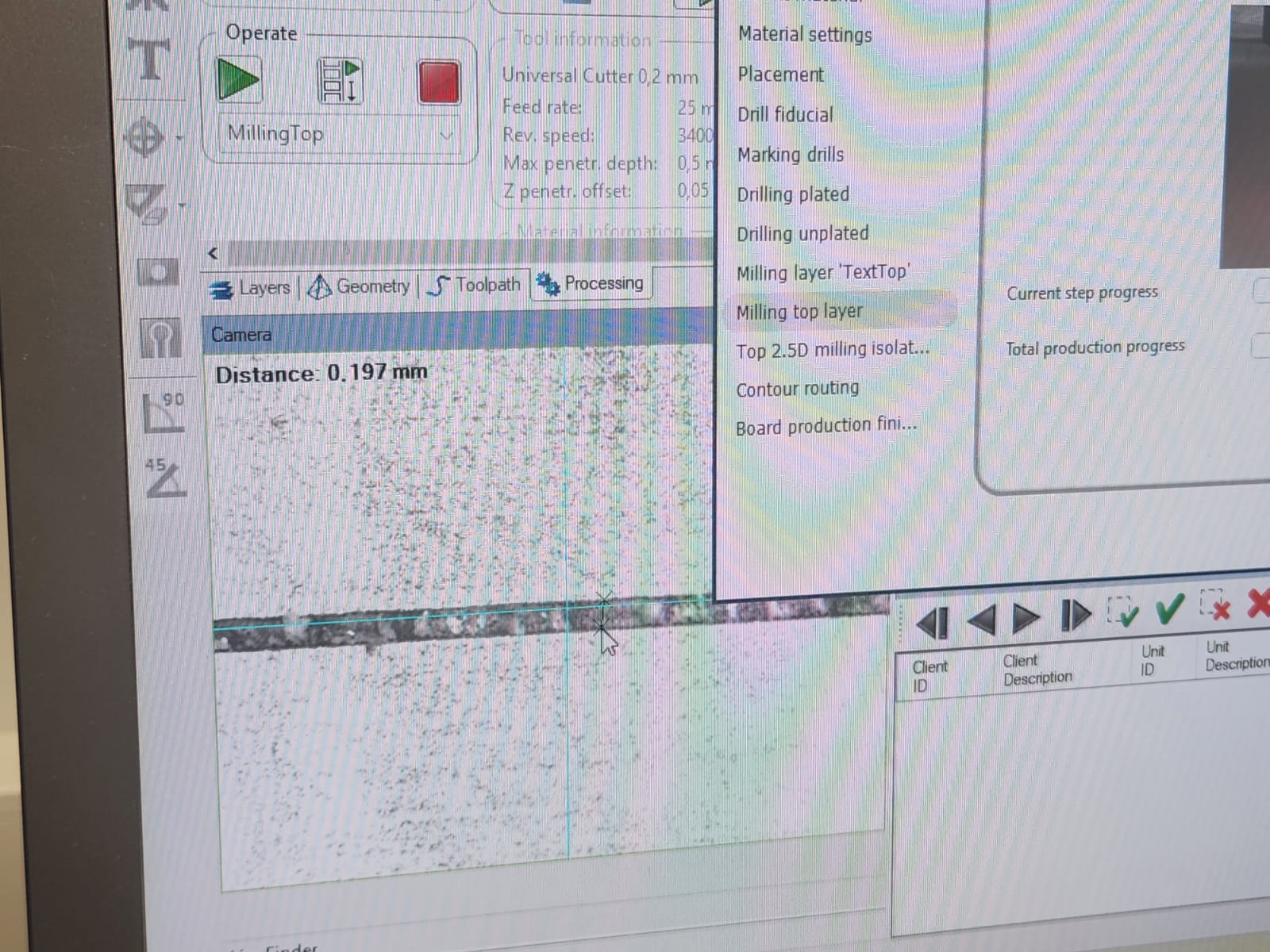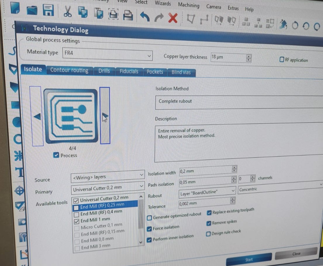 After set the milling bit to 0.2 mm, milling process started: