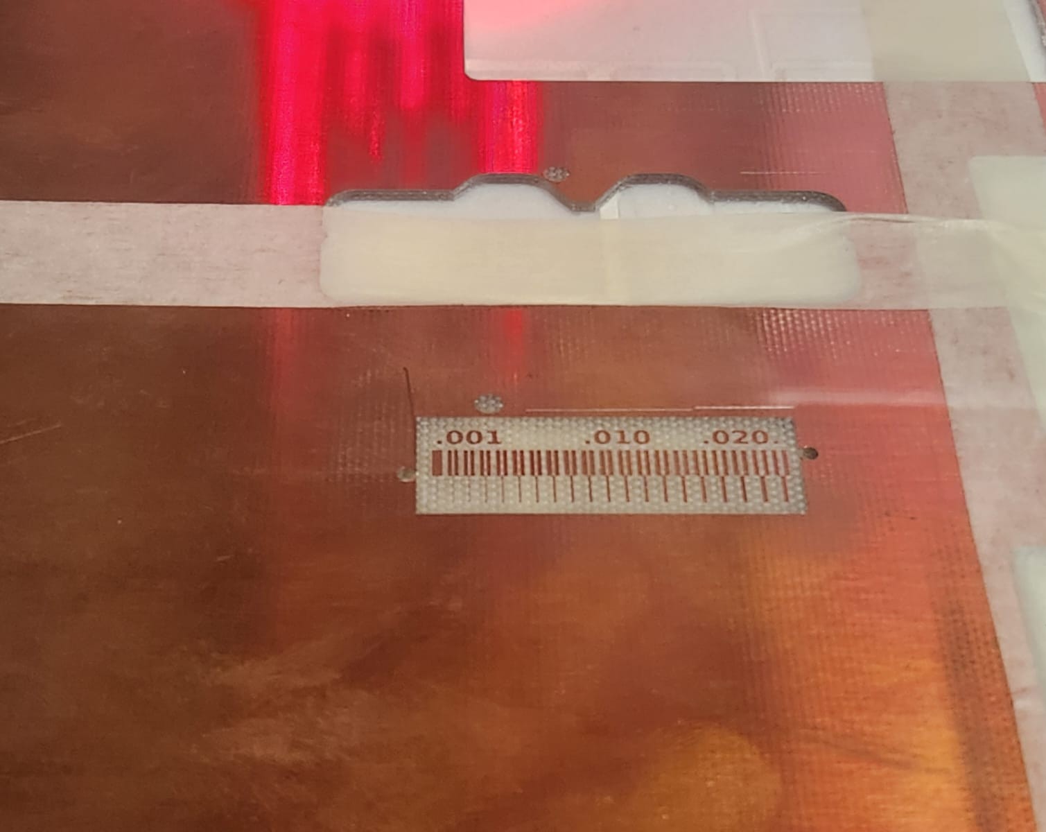 We chose and fixed the FR4 board in machine plate, and we taped it for not moving. The machine has also vacuum.