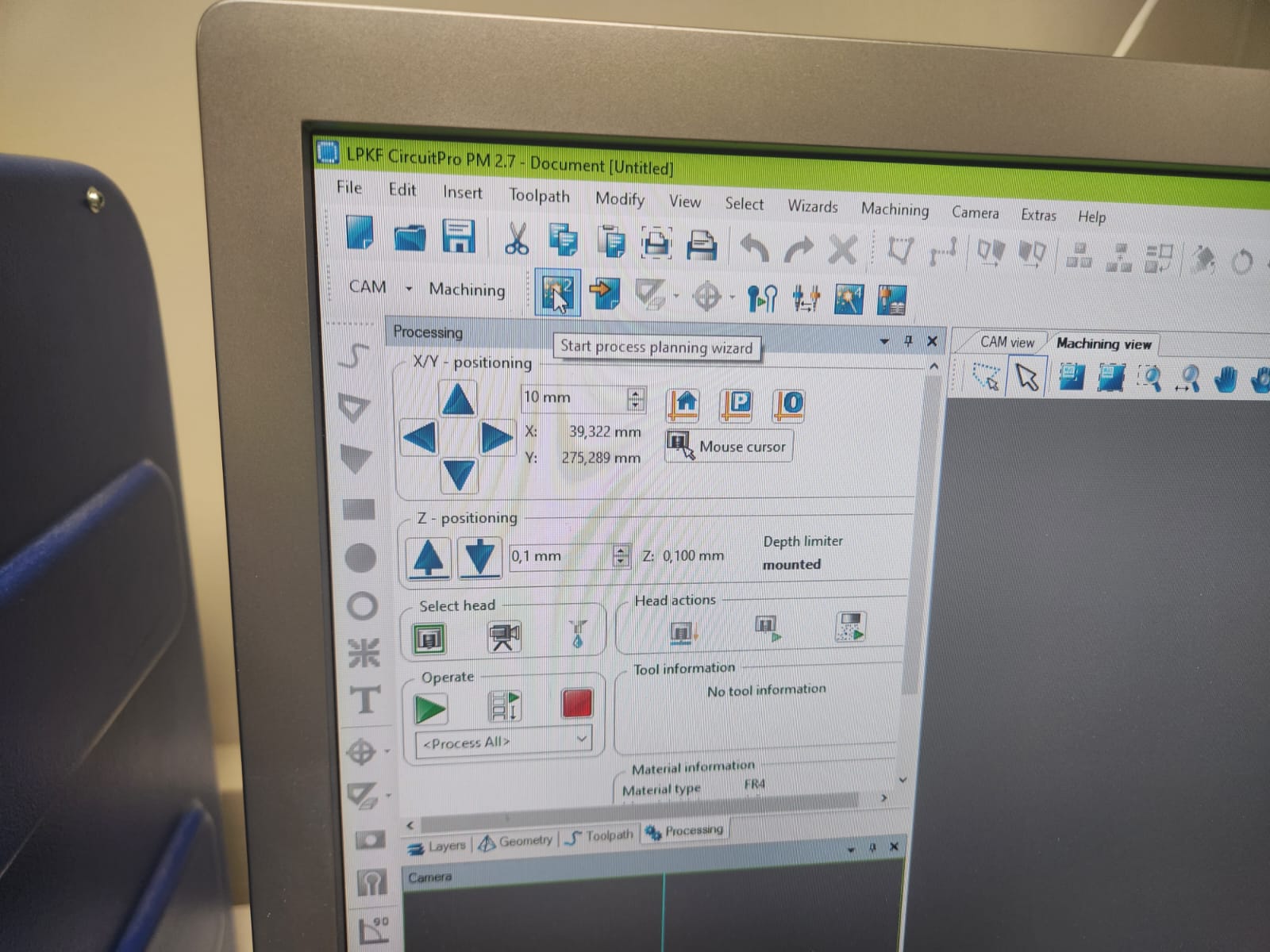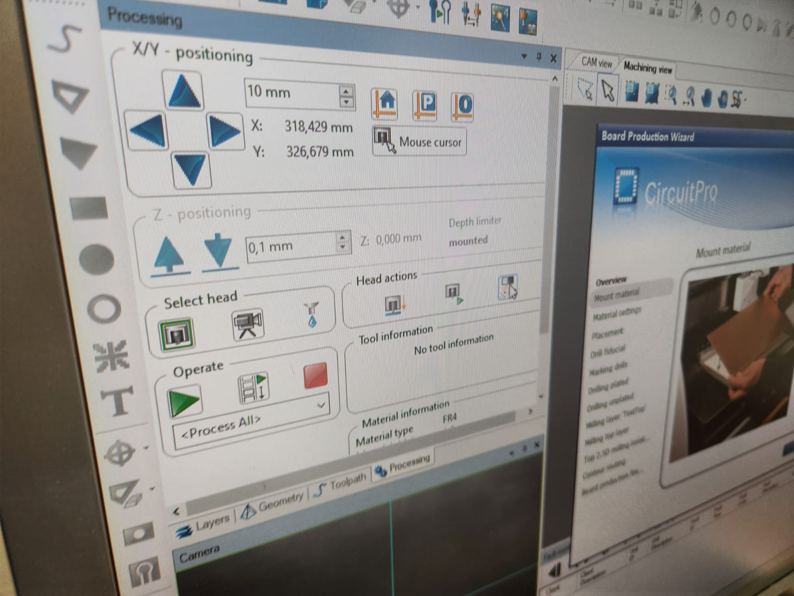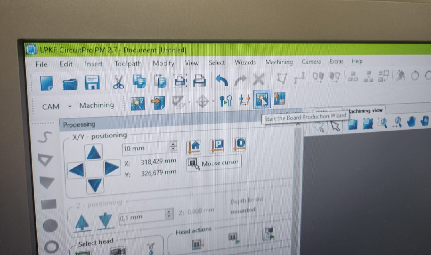 Selecting the location of the board for milling: