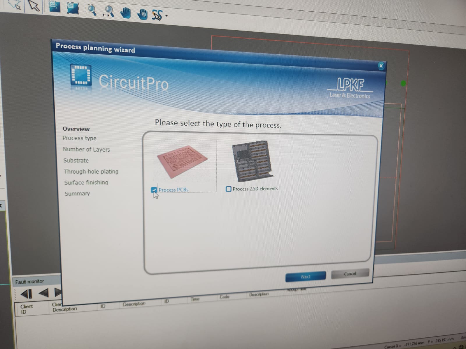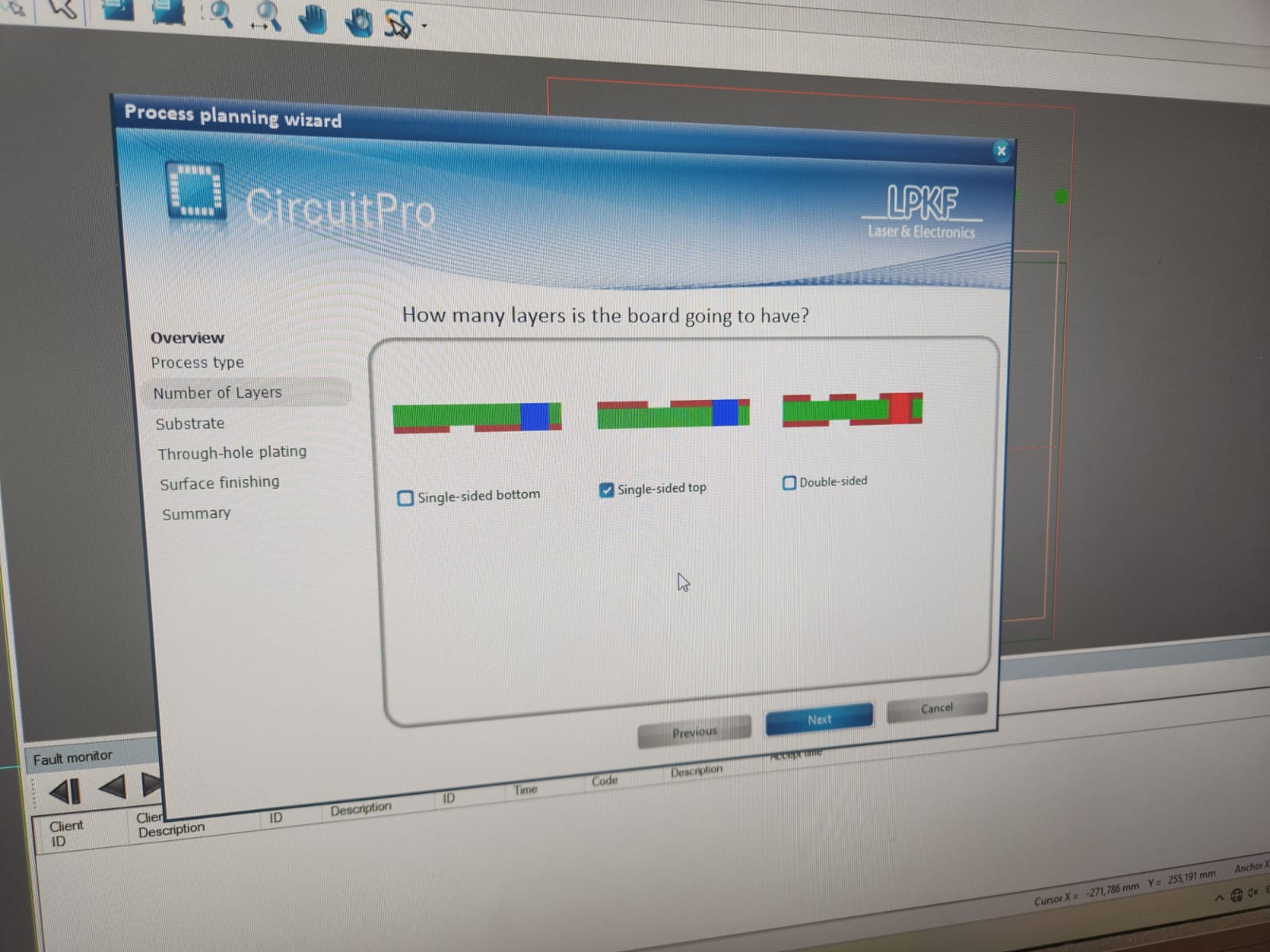 To start setting up the process, we started Process wizard and chose a single side PCB: