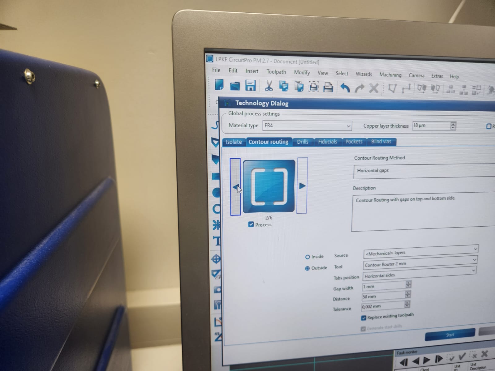 Next, was setting up for contour routing toolpath and generated isolation: