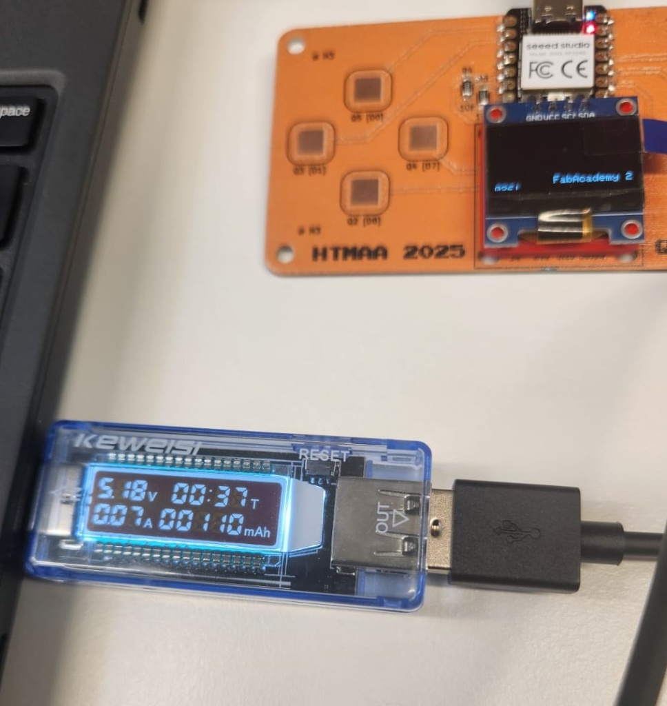 After connecting the OLED, the reading was: 0.031 A, 5.18 V, resulting in: