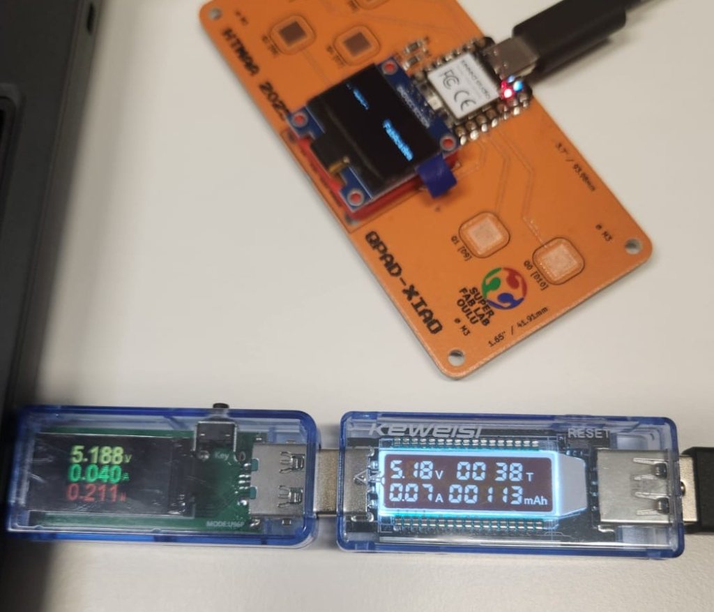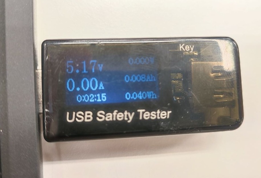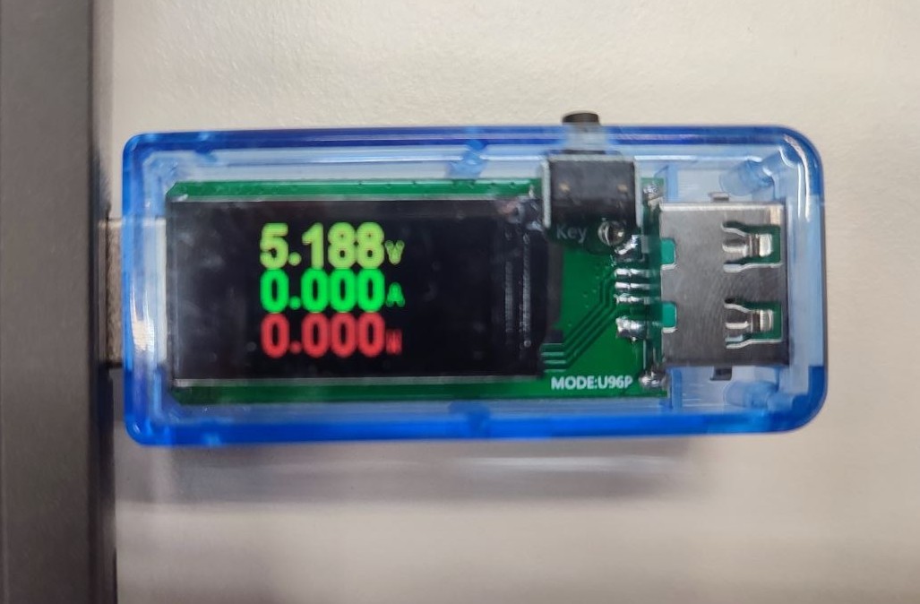 Each power meter was connected between the laptop’s USB port and the RP2040, which powered the OLED display. The measured values are shown below.