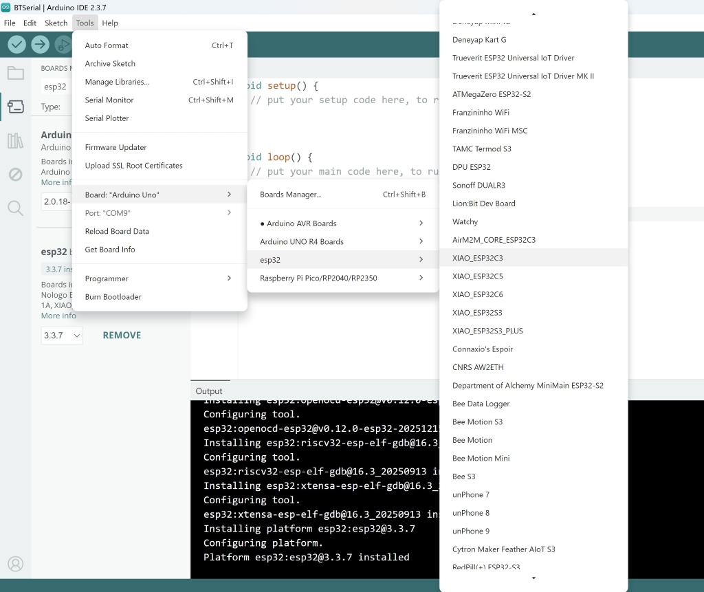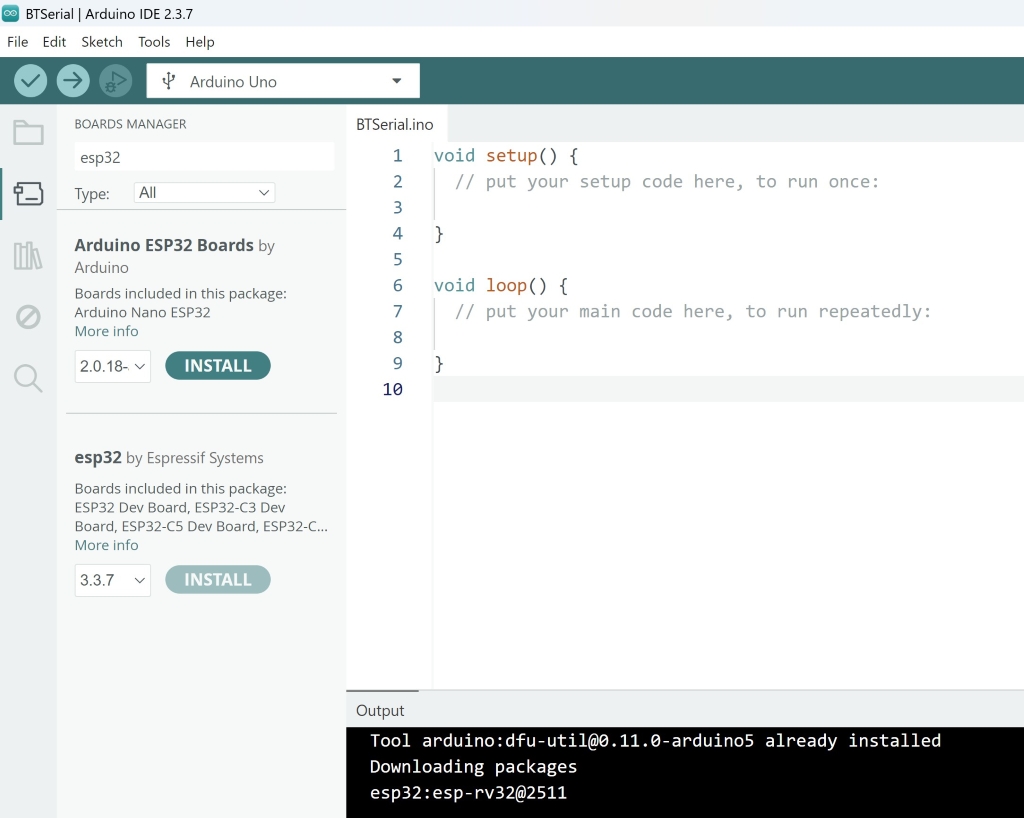 To network and having communication between three nodes, we used Arduino IDE and used. First we installed the ESP32 board: