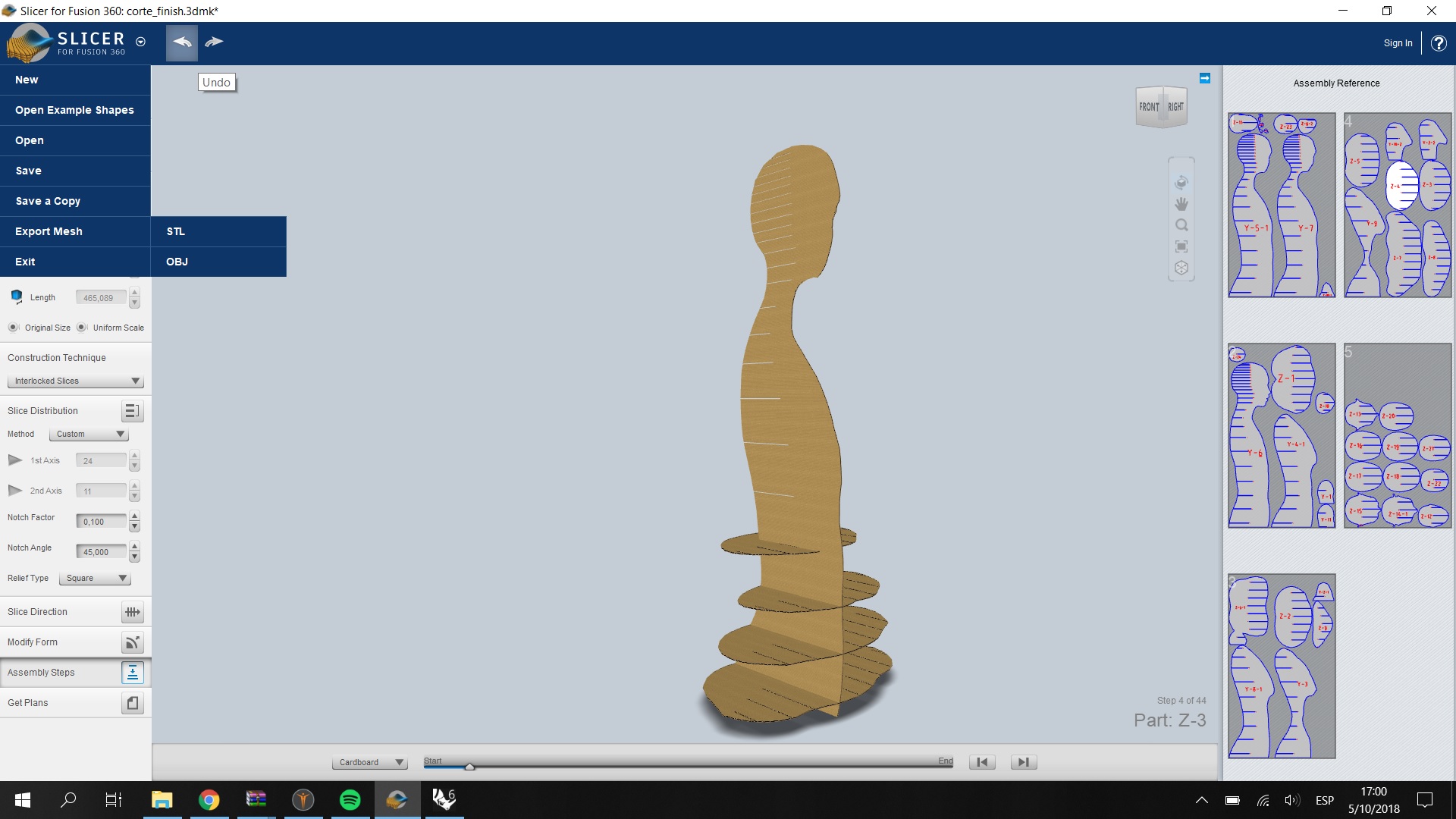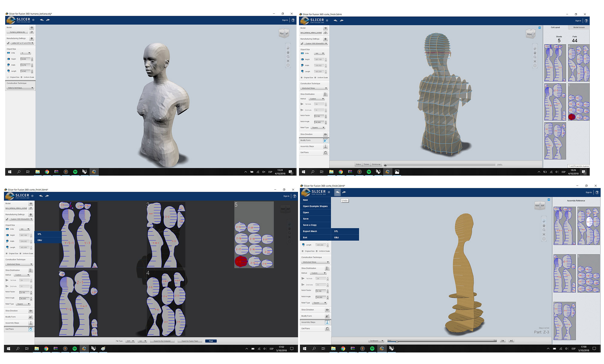 - Assembly steps: It shows a tutorial in 3d of how to successively assemble the layers previously numbered by the program. (according to the horizontal Z axis and vertical Y axis).