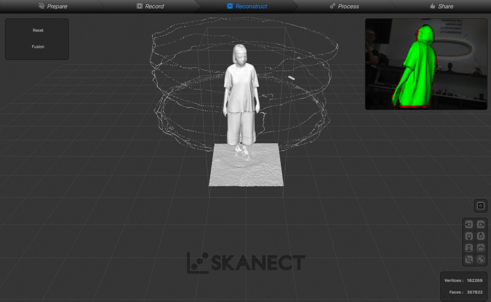 Kinect is a 3D webcam sensor for Xbox360, easily hacked to produce 3D scans using Skanect open source software. - To take into account: be sure to scan several times at various angles, pay special attention to the areas where the mesh tends to remain open, that is, the top of the head and the bottom.