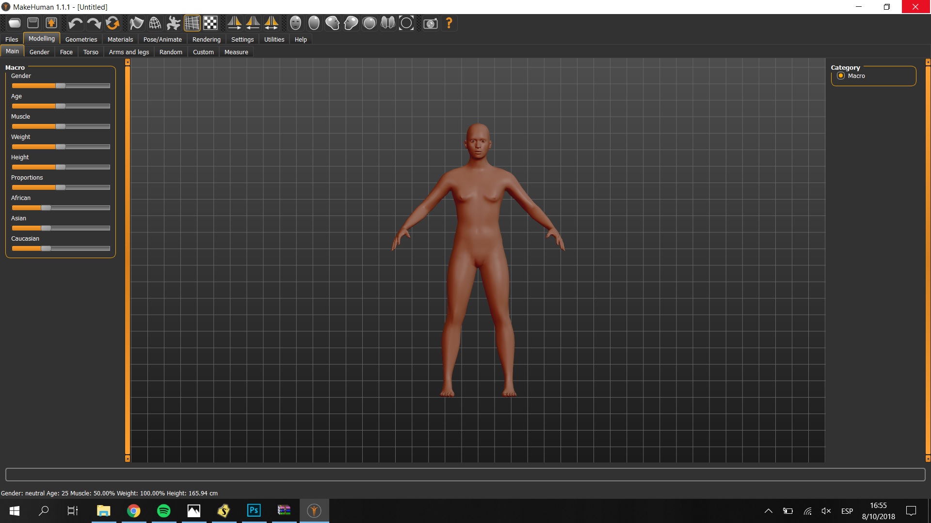 In my case I used Make Human to generate the human body, based on my own measurements (From the “Custom” tab).