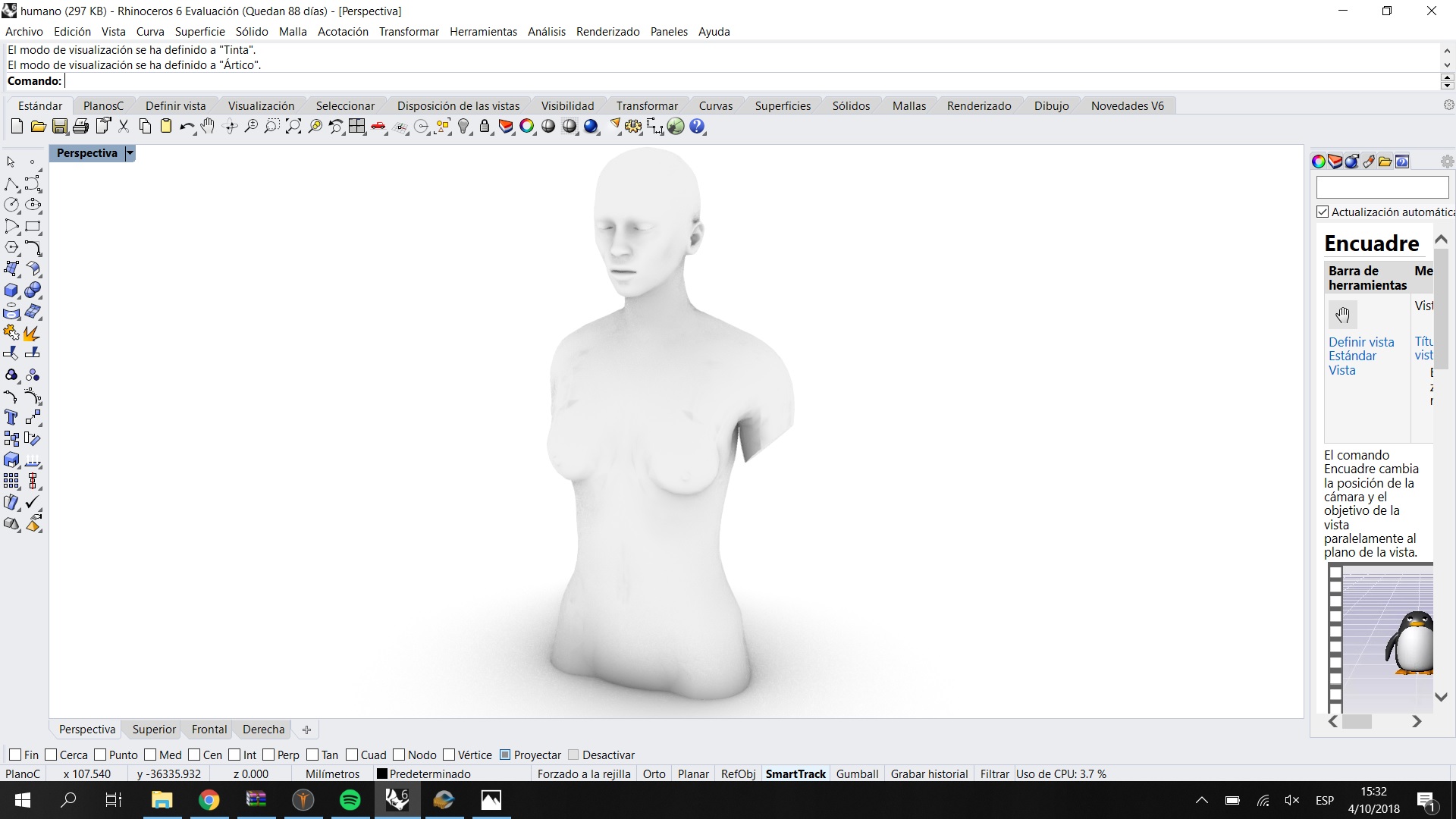 - Modify form: My idea from the beginning was to generate a decreasing gradient from the head to the lower part of the body; with this command I could move and add manually.