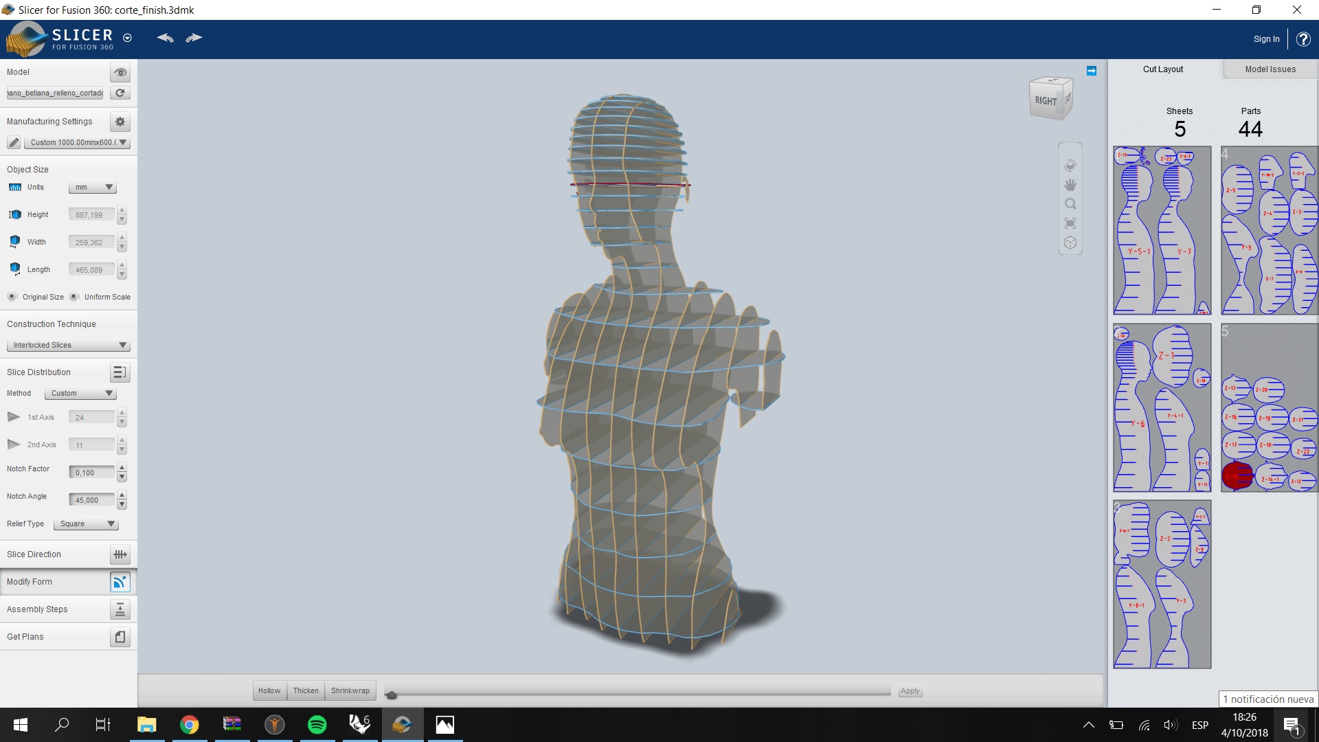 - Construction Technique: in my case I used= Interlocked slices. At that time you can play with the amount of horizontal and vertical layers that you want to apply, as well as the angle and disposition of them