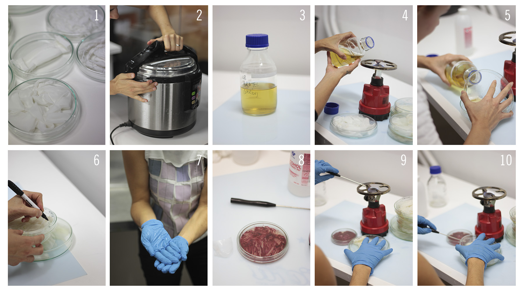 - 2 Then, all the samples are placed in a special bag to be introduced inside the pressure cooker, to be sterilized (the process takes 15 minutes).