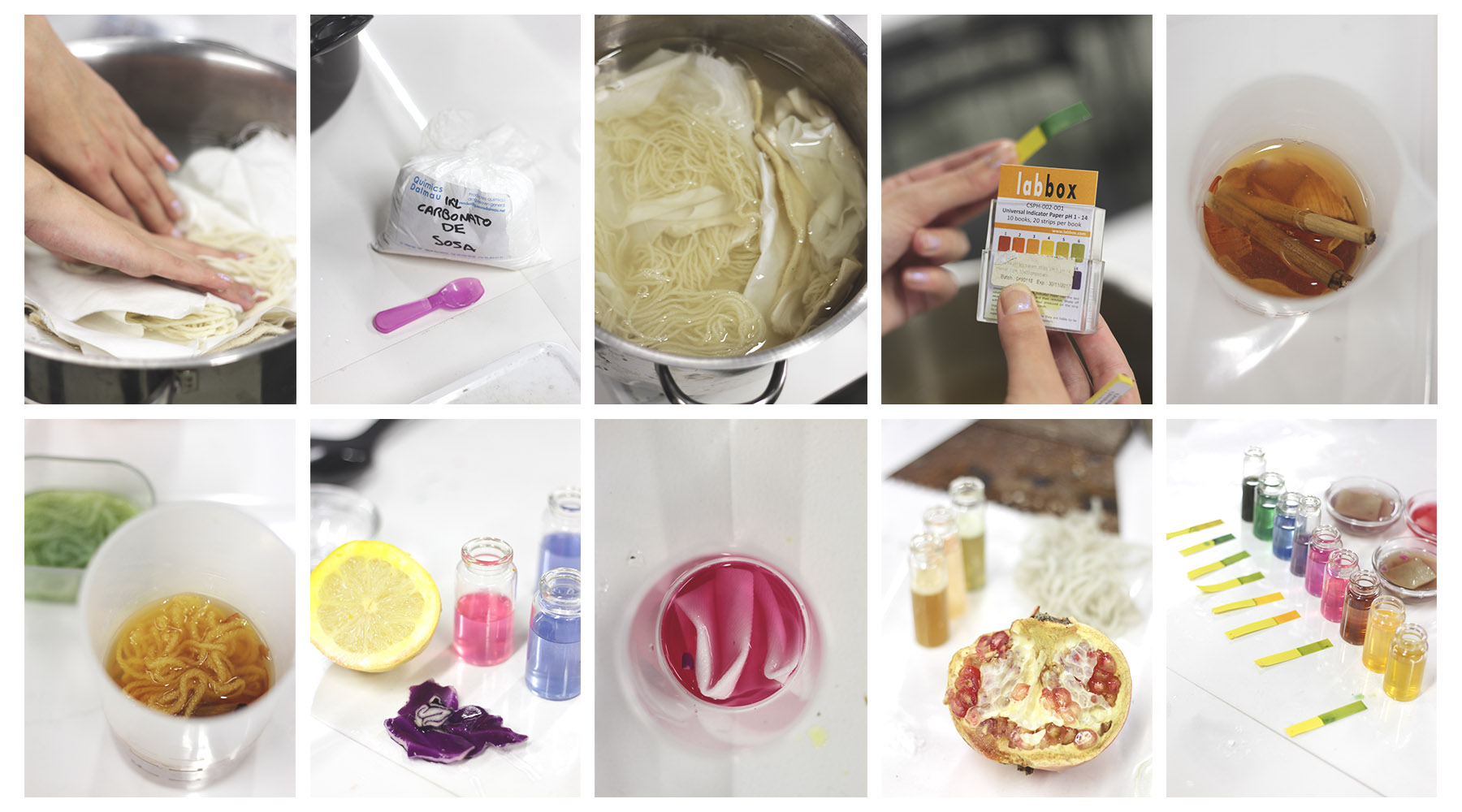 We experiment with various textiles, the process of dyeing with fruits and vegetables; obtaining a wide sample of natural dyes.