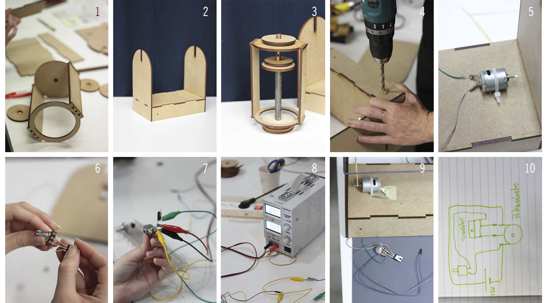 The next step was the real presentation of his first spinning machine, which we had to build step by step in groups of 2 people (previously predetermined by a series of questions and answers, which took us to our closest companion for this mission) in my case: Ana Correa, with whom we form a great team.