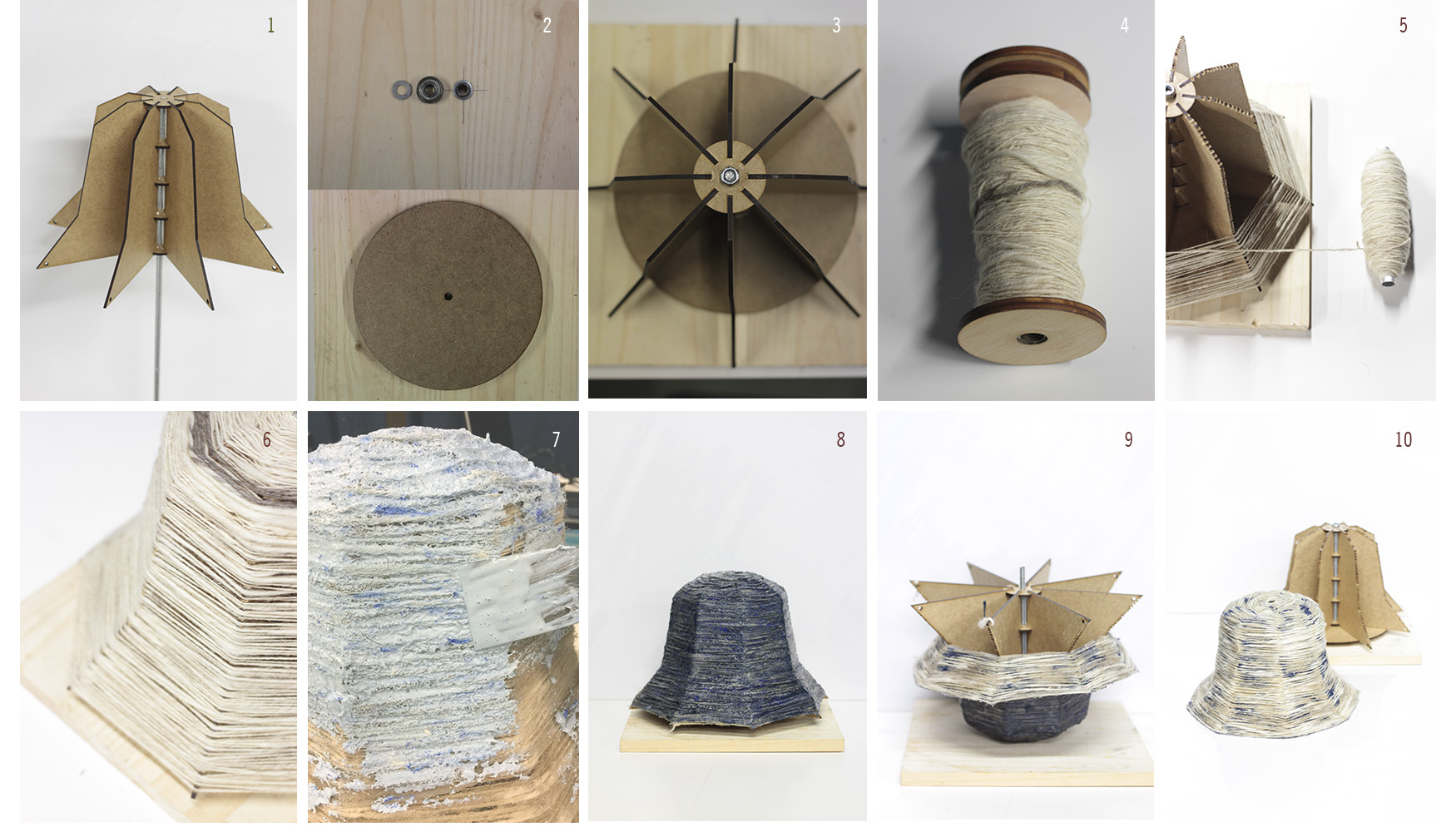 The assigment of this week, was really a challenge for me: To build your own machine, to make it work and perform or perfect “something” with the result of it … It was an intense week but very fruitful and stimulating. It began with the arrival of Natalija and Sara from Studio Hilo (Berlin) which introduced us in a very didactic way in the world of spinning; from its ancestral and manual process to the current machines and softwares. His work is specialized in this field, innovation in Spinning through his own machines which have a direct interaction with the user: