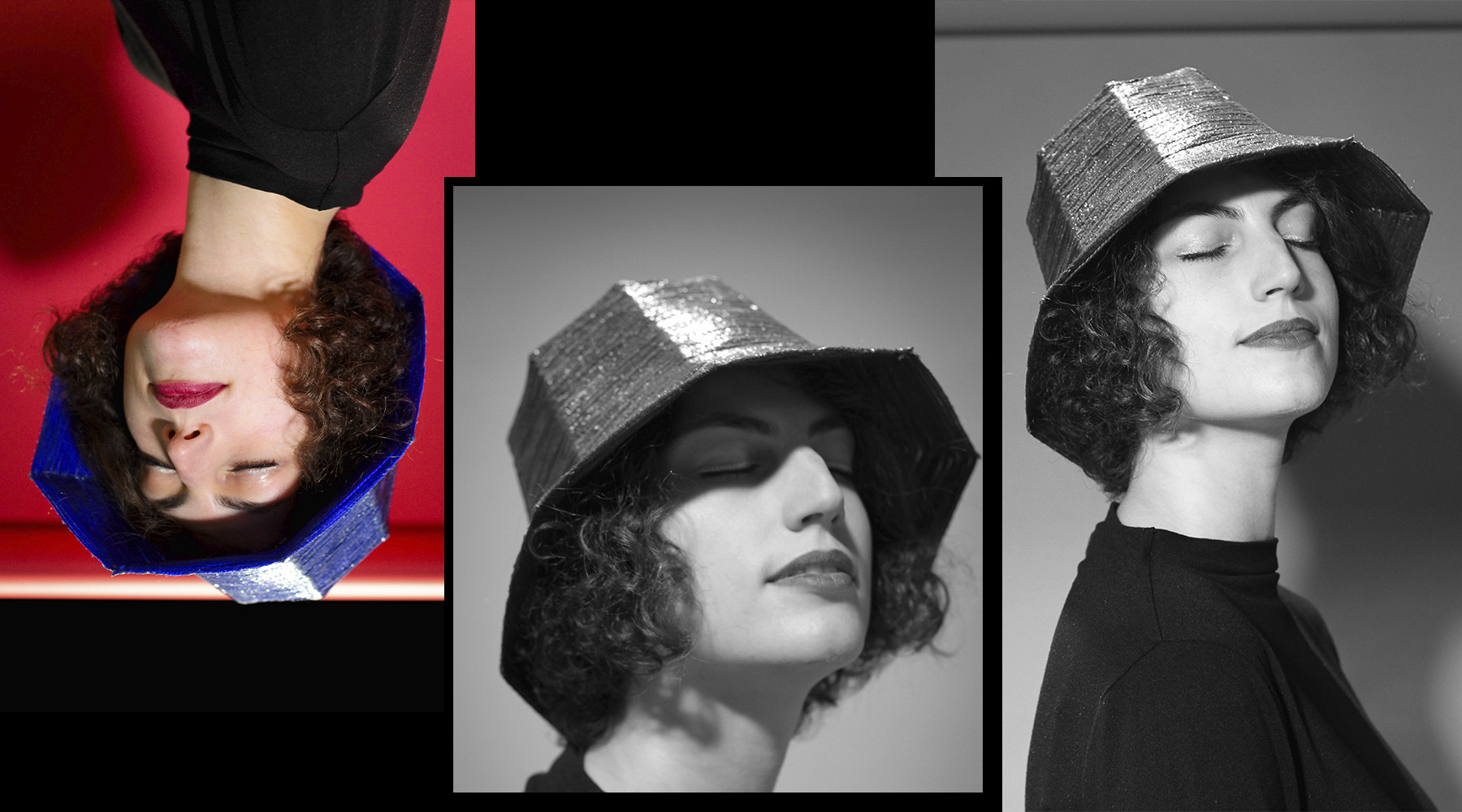 After spinning many hours, I had to think I could do with all that material achieved 50% by the machine and 50% with my hands. The mixture of thicknesses and materials was worthy of being in view in a final product. Inspired by the work of Wendy Andreu in her progento Regen, I decided to apply this technique creating my own volume to tighten and shape through the thread: piluso style hat, which in a single volume, contains the helmet and wing.