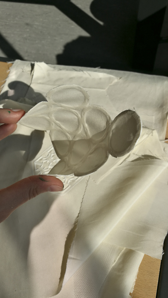 The crystal seed can grow on the fabric but not on the PLA so it’s a way to control the shape of the crystal.