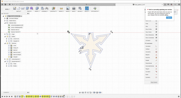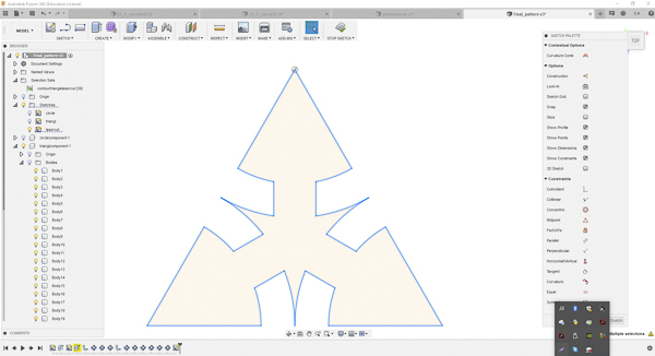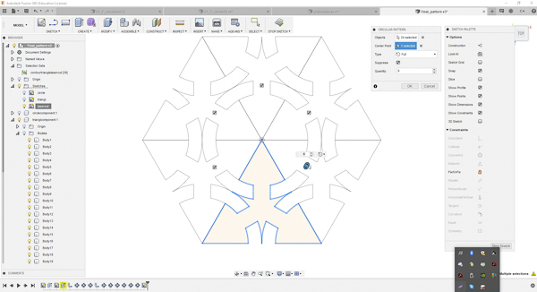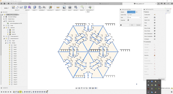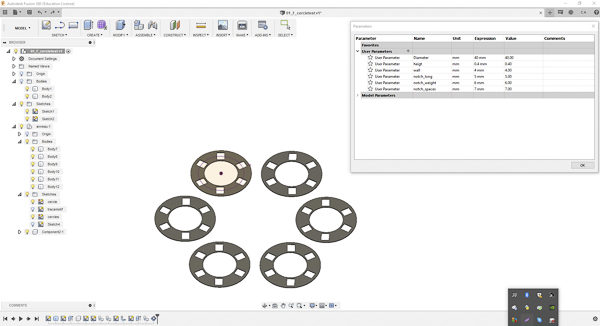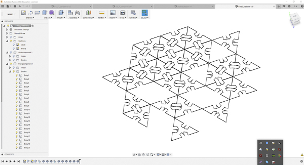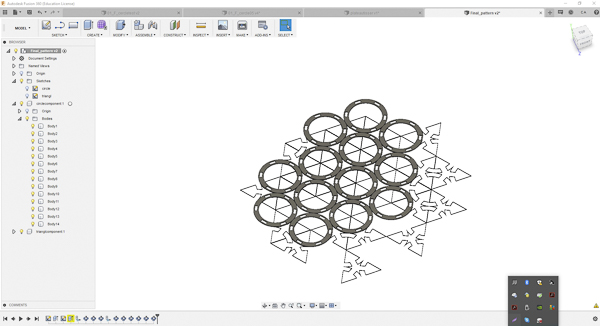 I tried to find a way to make a modular shape with notches for a test of my final project and take the pattern that I have made from an old assigment.