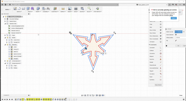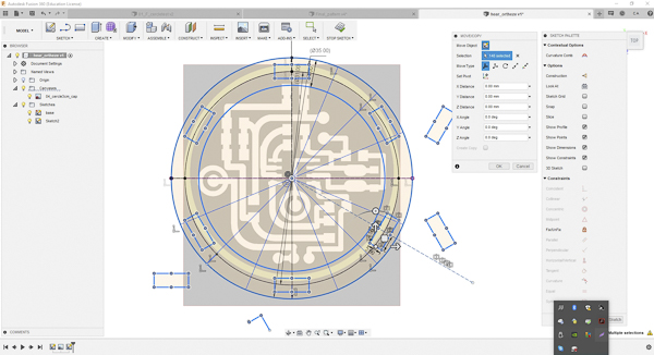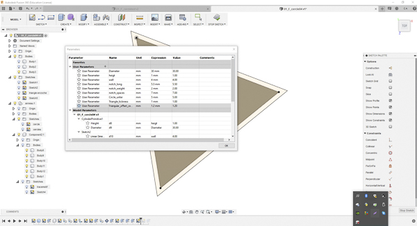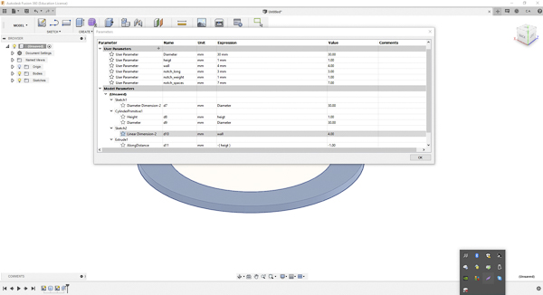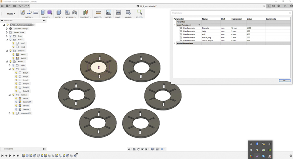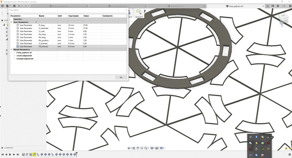 At any moment during the design process I can change the size of the circle, the thickness, the size of the notches…