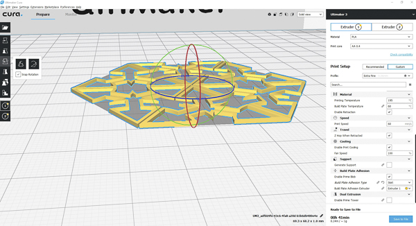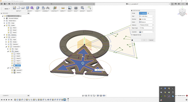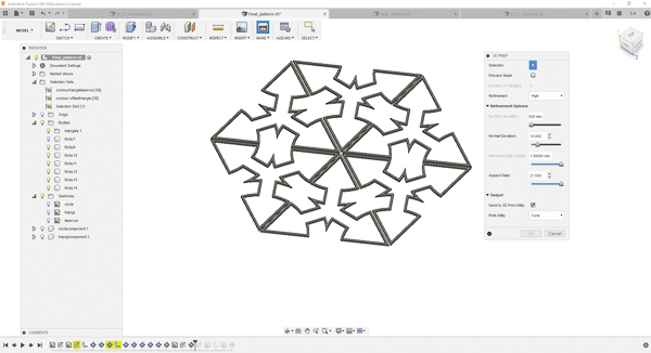 The process with fusion 360 is easier because the software has the settings for exporting the 3D files through Cura directly. The process is : Fusion 360 > Cura + Fusion 360 > dwg + LaserCut