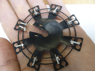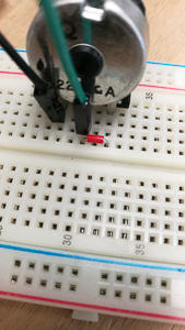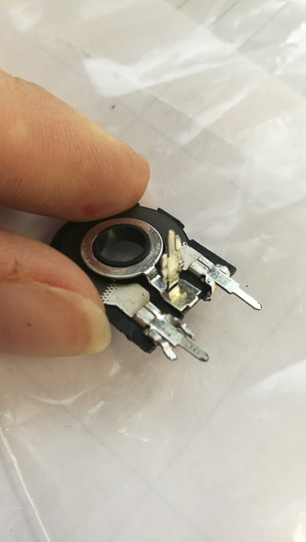 The potentiometer is a resistor and a “bout de métal” which make the variation of the resistor value.