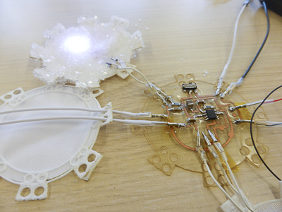 The cristal to refract the light. The cristal can be a shell, or an anti-shell. It’s a fragile part of the circuit, but also the cristal says to us that we need to take care about our electronical devices. They are material from the earth. All our world turn around the industry and the process of fagricating with the progress…