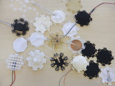 The modules could be placed on differents piece of fabric / garment Lasercuted