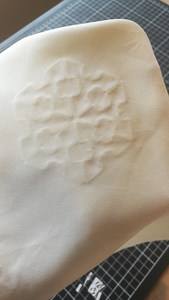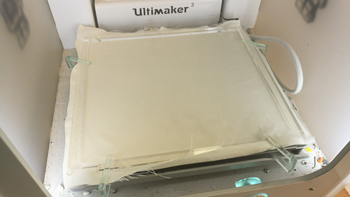 To find the zero and place my piece of 3D printed silk textile, I make my own pattern to have the right place.#