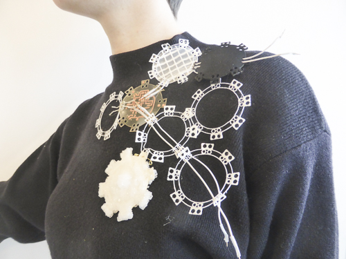 For the electronical connexions I could design a parametrical module in a conductive fabric. But I don’t have time to this part so I have decided to take the cable as my connexion for the moment.