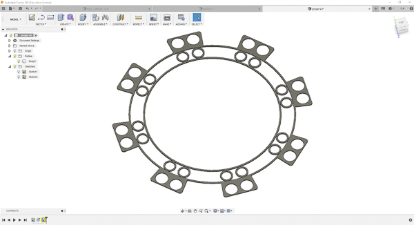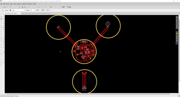 Then I choose to take off the triangular part of the design. I keep the circle and the conneions between circle will be the electronical connexions.