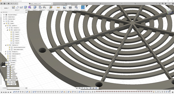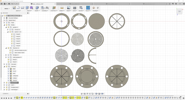 Then I have started with this circle patern where the connexions cable can go through the circle.