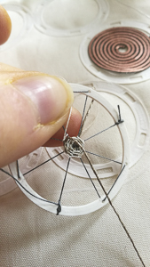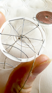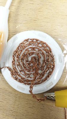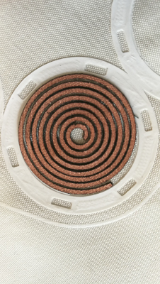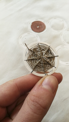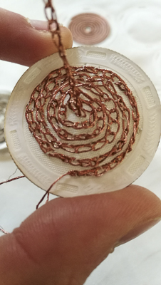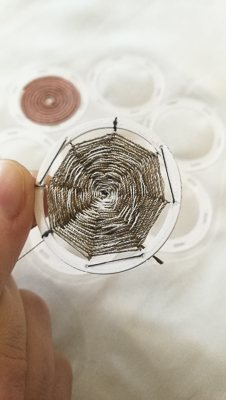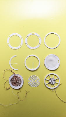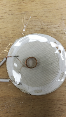 The thin membrane is a technical details in order to have the best sound quality. I have tried different things and the best one at this moment is the silk paper. So for a test I try to make a spiral coil membrane with a paper silk circle and a copper shield spiral.