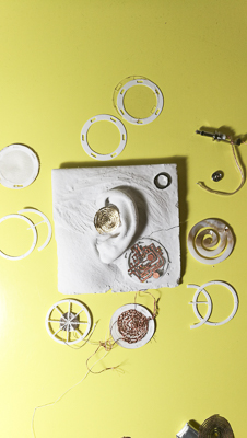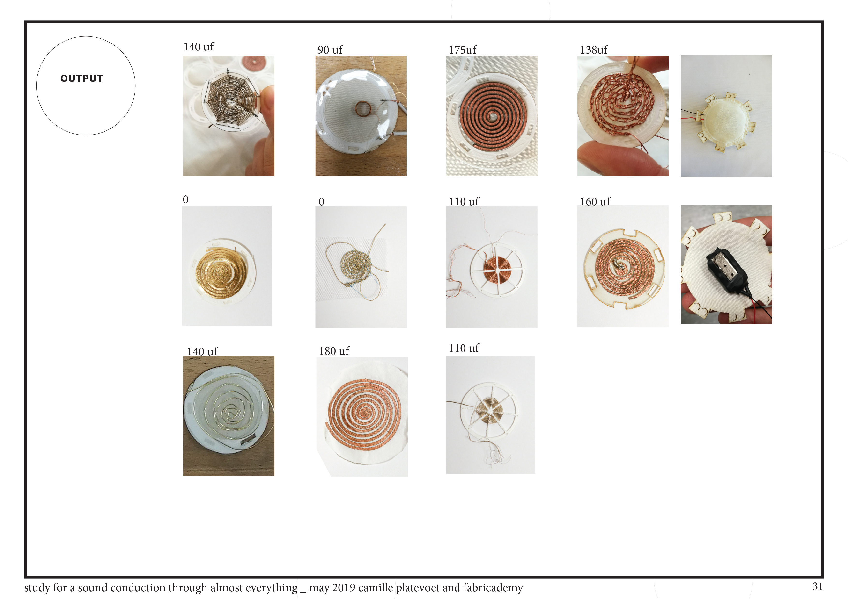 The interest of the bones conductor is that I could put on/in differents material/shape, like daily object to make sound. Or listen sound through plants… I can imagine that my device could amplify the input audio signal and the output could be the bones, but also every material around us.
