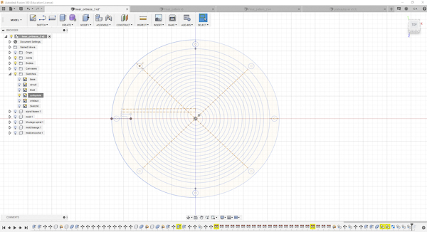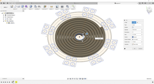Design a flate spiral coil Make the file to insulate the + trace from the center the whole circle structure file for flat spiral saved with .dwg