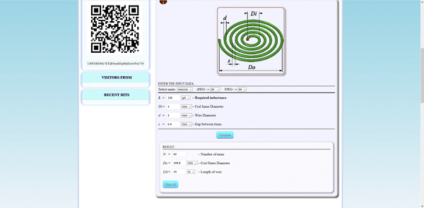 L (uH) = r^2 * A^2 / (30A -11 Di) / A= (Di+N*(w+s))/2 Di =inner diameter in inches. / s =distance between windings in inches. / w =wire diameter in inches. / N = number of turns. / Do =outer diameter. / 1 inch = 0,0254m=2,54cm = 25,4mm.