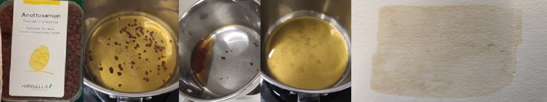 Immerse a piece of coton in this bath: the color will appear very slowly, first orange then more and more red.