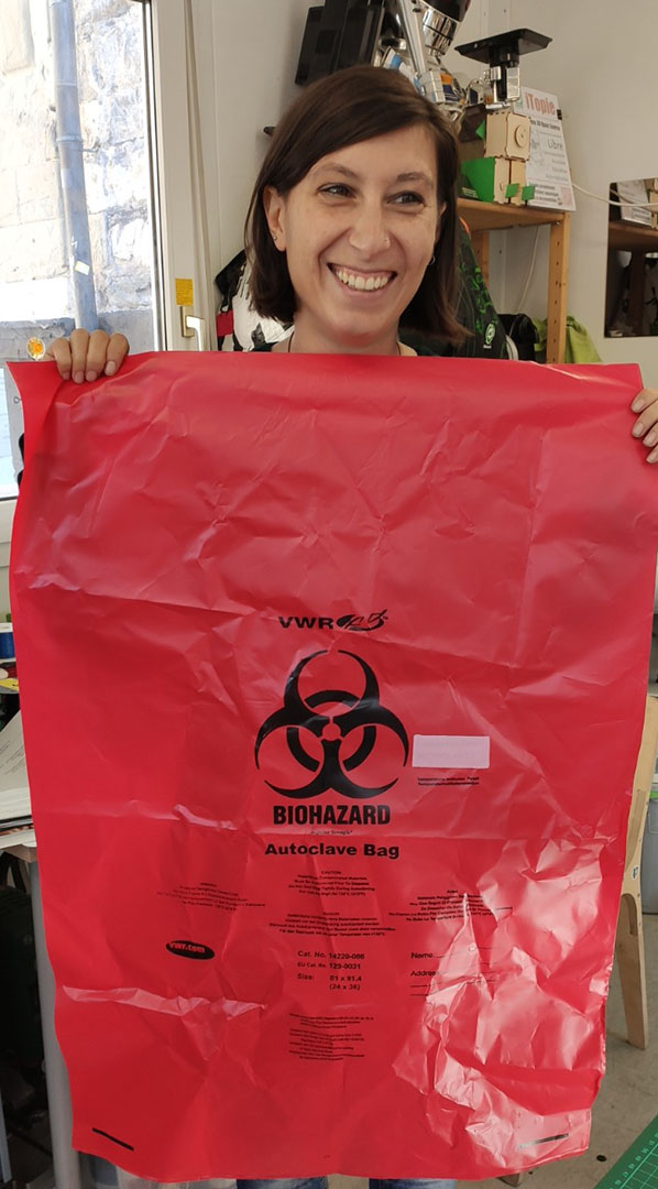 At the end, you need to take a few precautions to clean up any single-use equipment like petri dishes that need to be placed in a special bag and given to someone who works in a laboratory in order to receive proper treatment.