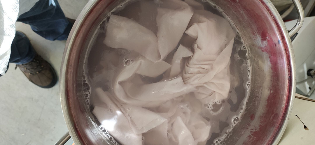 A slow rise in temperature and a extended duration guarantees good success. Born not boil (about 80 degrees) Rinse the piece of cloth with lukewarm water until get clear water and dry.