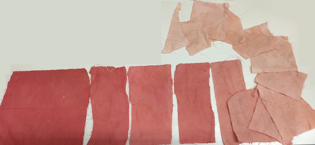 Then we need to treat the fabrics with Mordant. Mordant or Dye fixative is a substance used to set dye on fabrics by forming a coordination complex with the dye,which then attach to the fabric. it exists plenty of mordants including tannic acid, alum, chrome alum, sodium chloride, and certain salts of aluminium, chromium, copper, iron, iodine, potassium, sodium, tungsten, and tin.