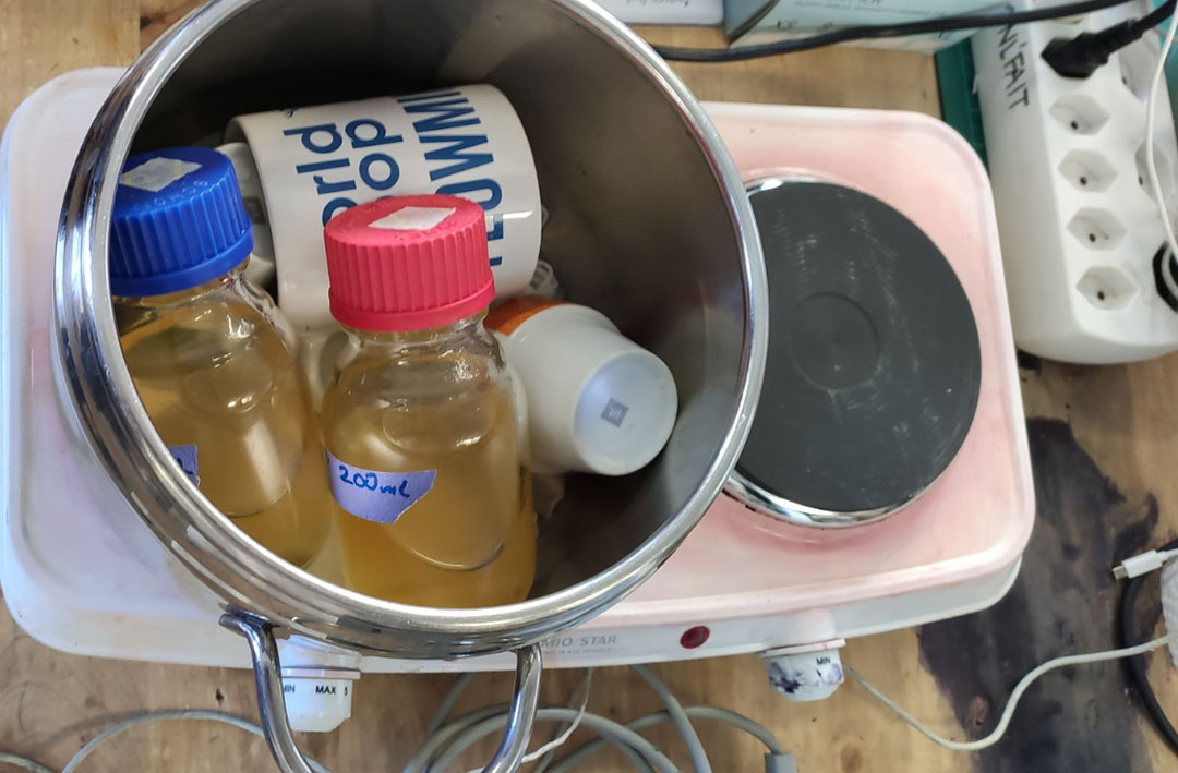 Then we let it cooldown and prepare the Petri Dishes on the table because we will need to act quickly.